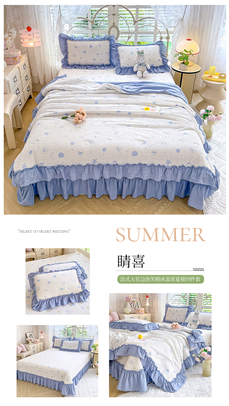 (总)韩约家纺 2026新款法式大花边泡芙棉床盖款夏被夏凉被空调被四件套