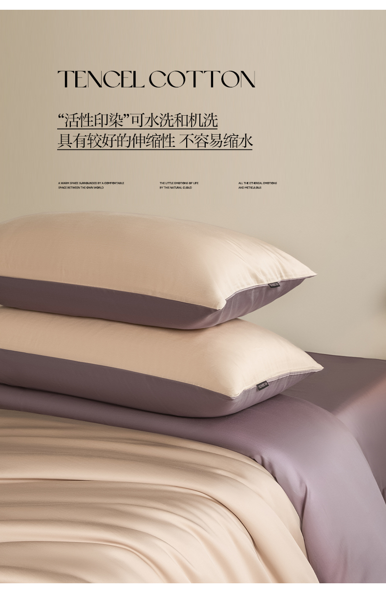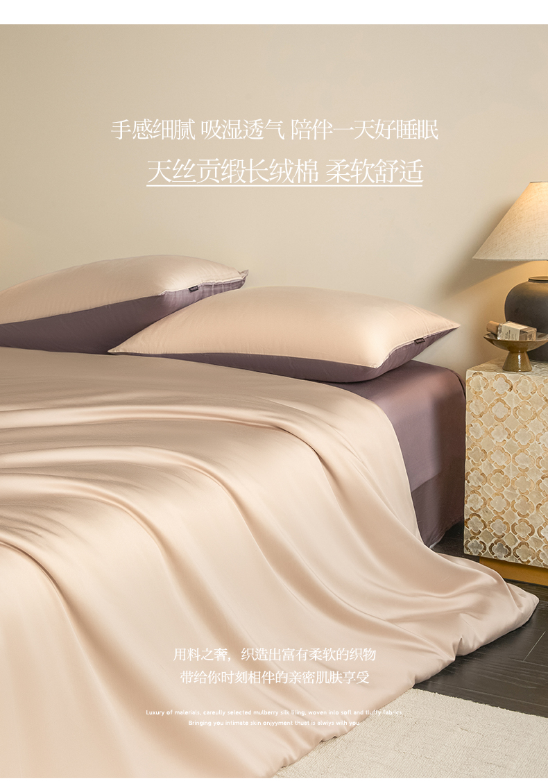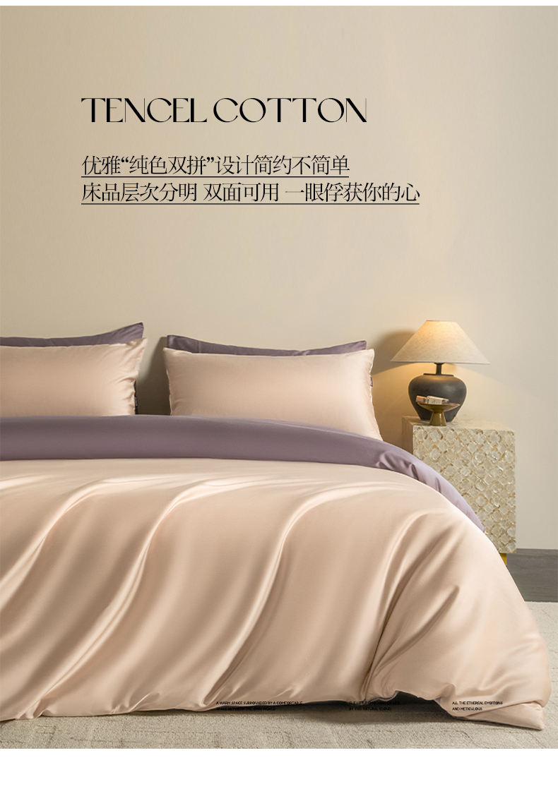 商品名称:秀色家纺 2026新款60S进口天丝贡缎新疆长绒棉纯色轻奢四件套 Air-天丝棉-桃灰粉+迷雾紫