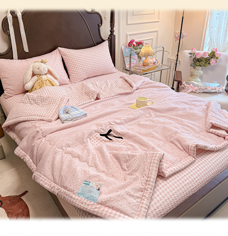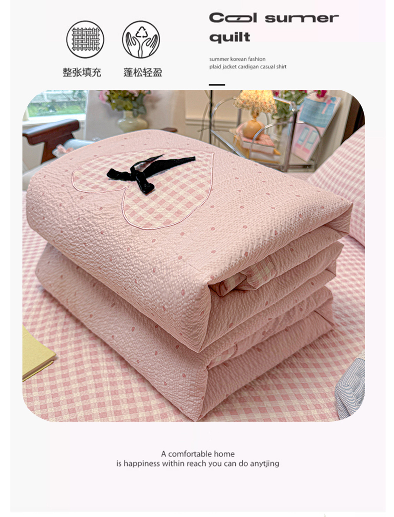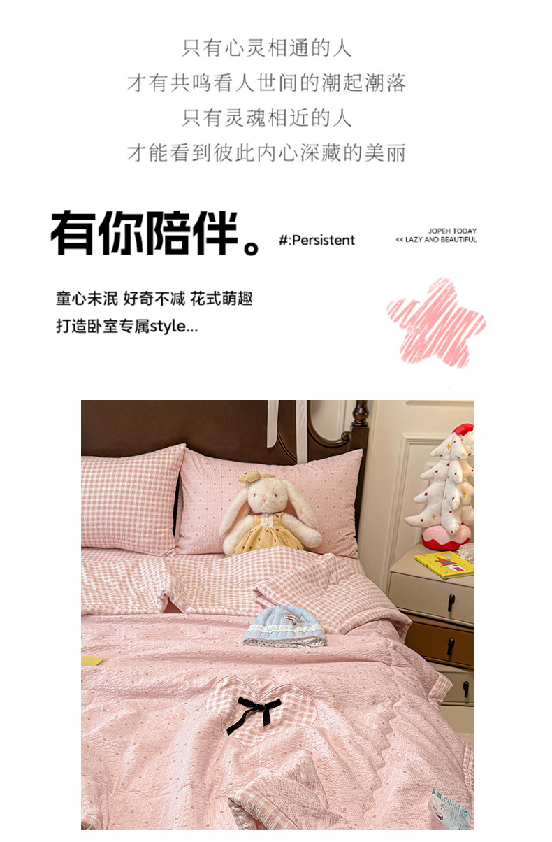 瑞禾家纺(原阿亮) 2026新款春夏新款提花泡芙棉贴布绣手包边单夏被夏被四件套-丘比特的爱恋 丘比特的爱恋-奶粉波点+粉波点