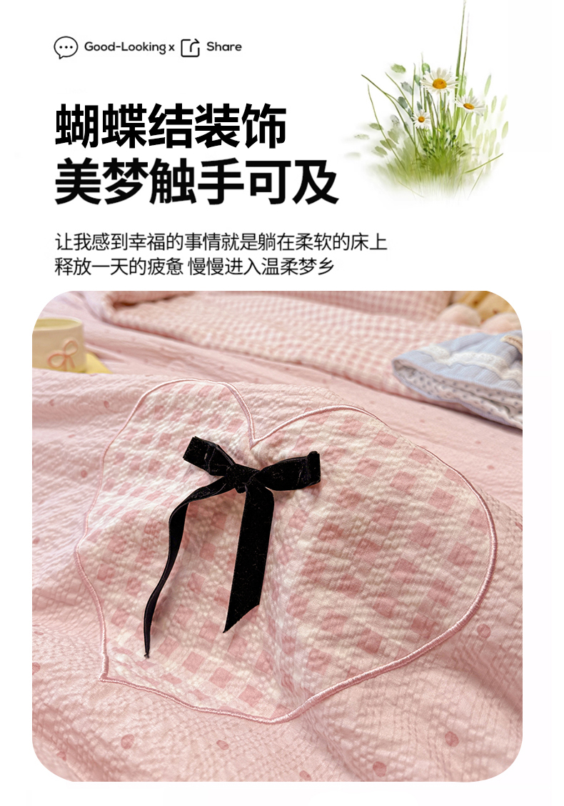 (总)瑞禾家纺(原阿亮) 2026新款提花泡芙棉拼角蝴蝶结软乎乎的撸猫感单夏被夏被四件套-甜莓气泡,甜莓气泡-海盐蓝波点,甜莓气泡-奶粉波点,甜莓气泡-奶红波点,甜莓气泡-奶灰波点,组合图(仅供展示不可下单)