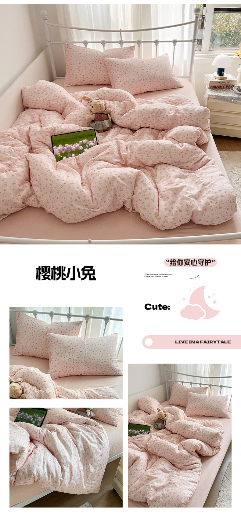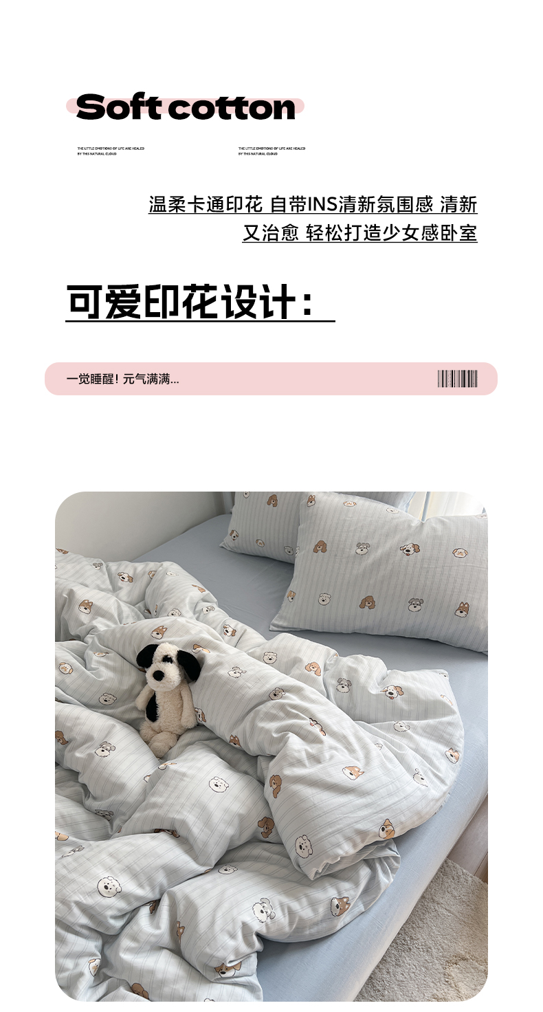 (总)早晨家纺 2026新款INS减龄可爱风卡通40支全棉纯棉色织水洗棉四件套,春日木马记,粉波点摇摇马,奶油小狗派对,趣味狗,软糖彩虹小奶猫,汪星人乐园