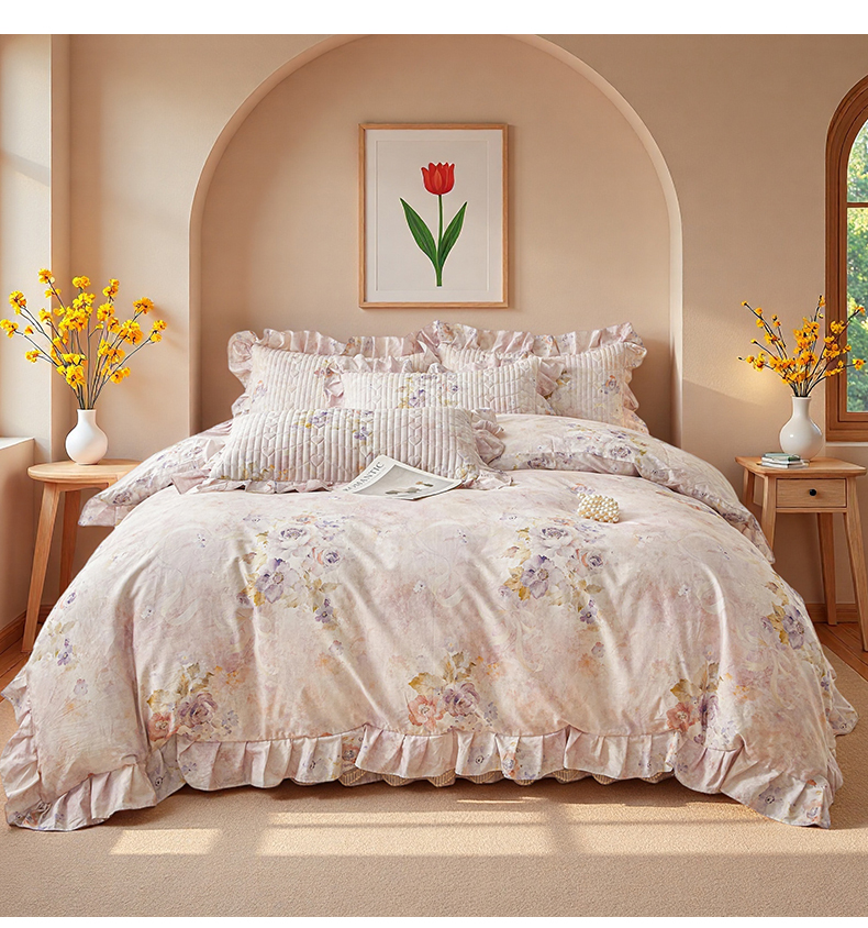 当前位置: 91家纺网 > 商品网购 > 床品套件 > 四件套 > 全棉普通四件套 > 宜凡家纺 2026新款全棉数码印花床盖三四件套①号系列四件套 香雪海