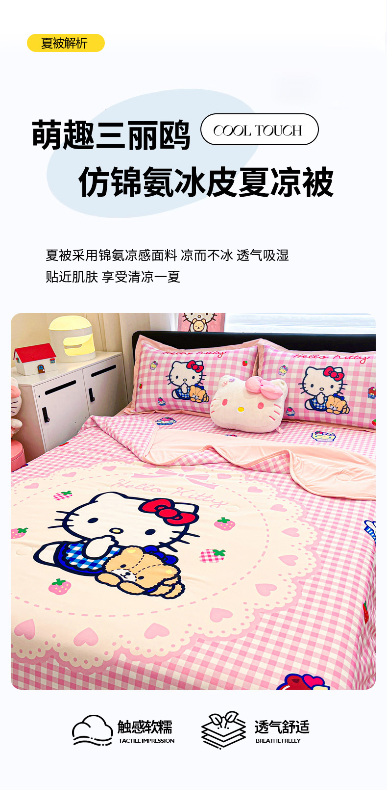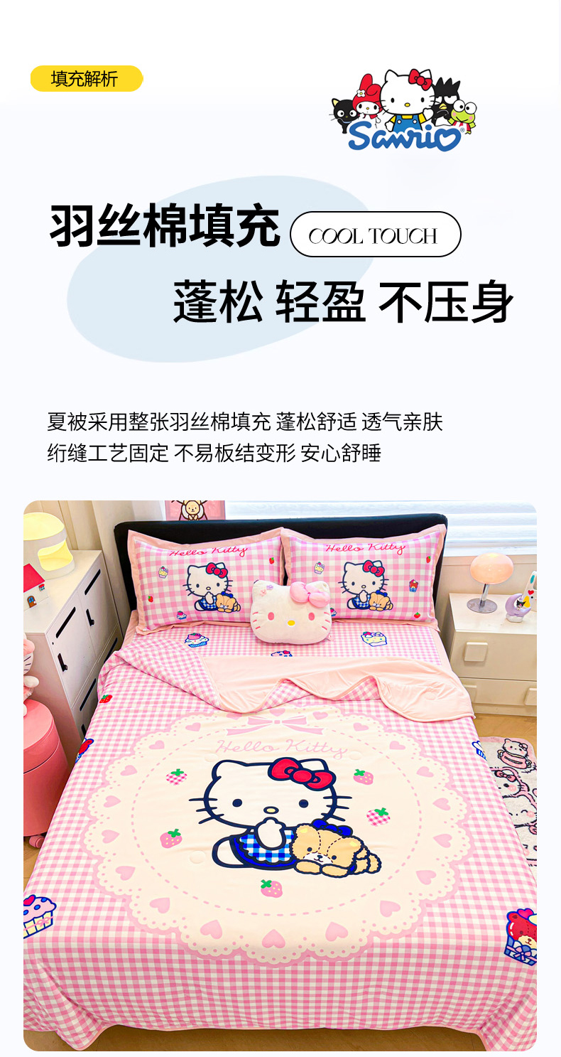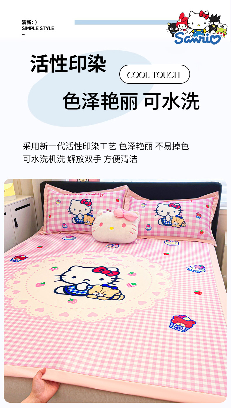 当前位置: 91家纺网 > 商品网购 > 床上用品 > 凉席 > 冰丝席 > 暮思家居 2026新款正版授权A类大版数码印花三丽鸥1200D冰丝凉席可组合仿锦氨夏被 平铺款-奶油KT