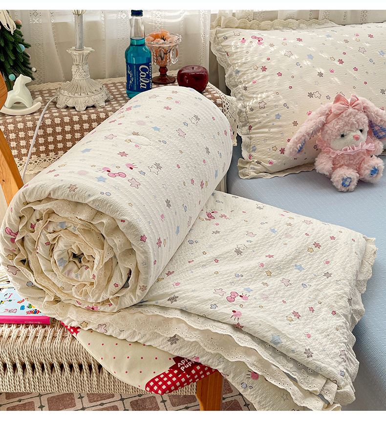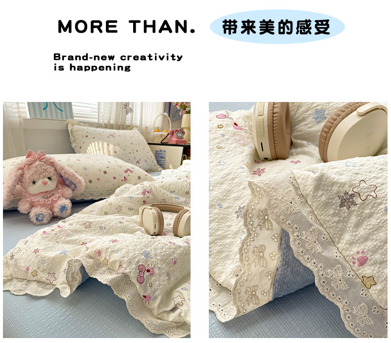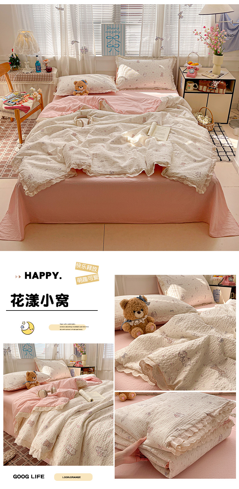 优承佳生活馆 2026新款超柔高克重泡芙纱蝴蝶结全棉花边夏被套件单夏被 童趣乐园