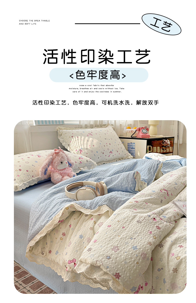 商品名称:优承佳生活馆 2026新款超柔高克重泡芙纱蝴蝶结全棉花边夏被套件单夏被 童趣乐园
