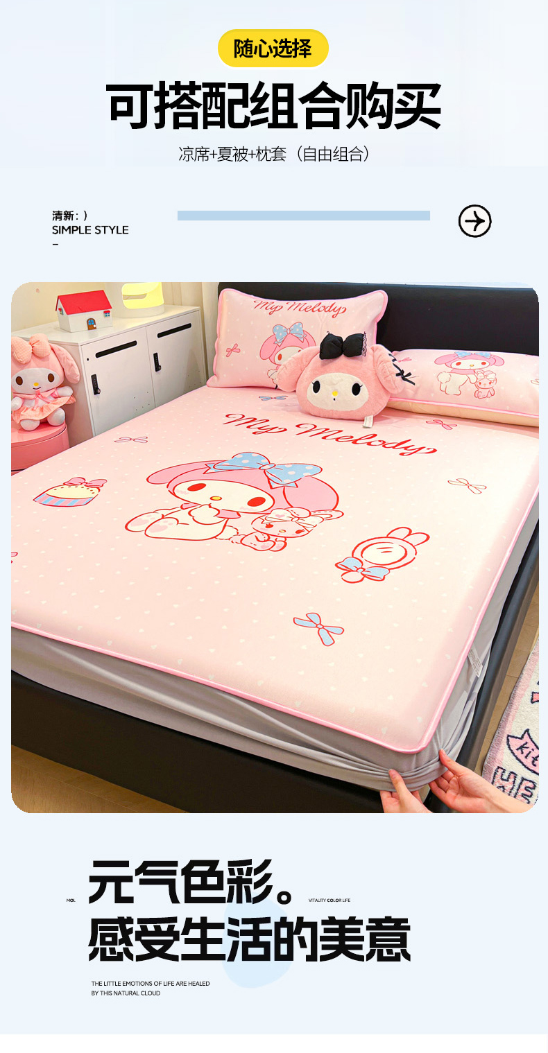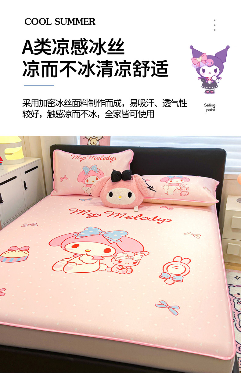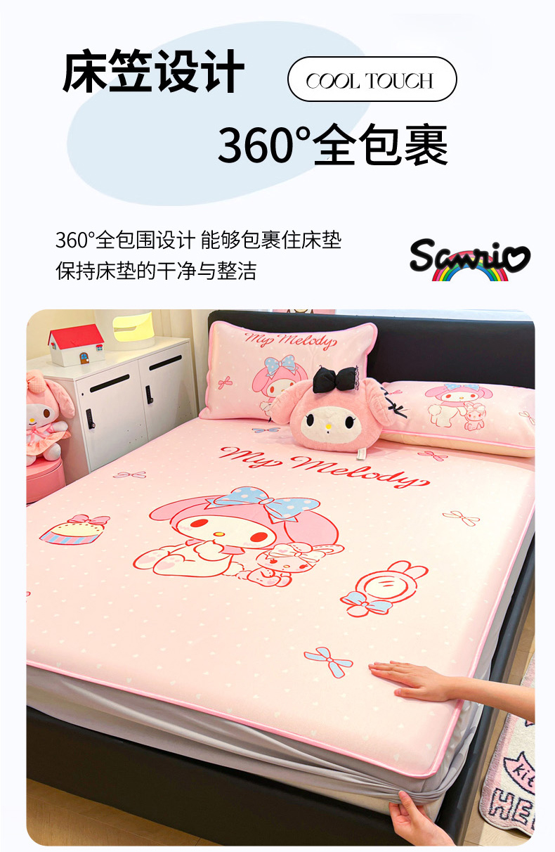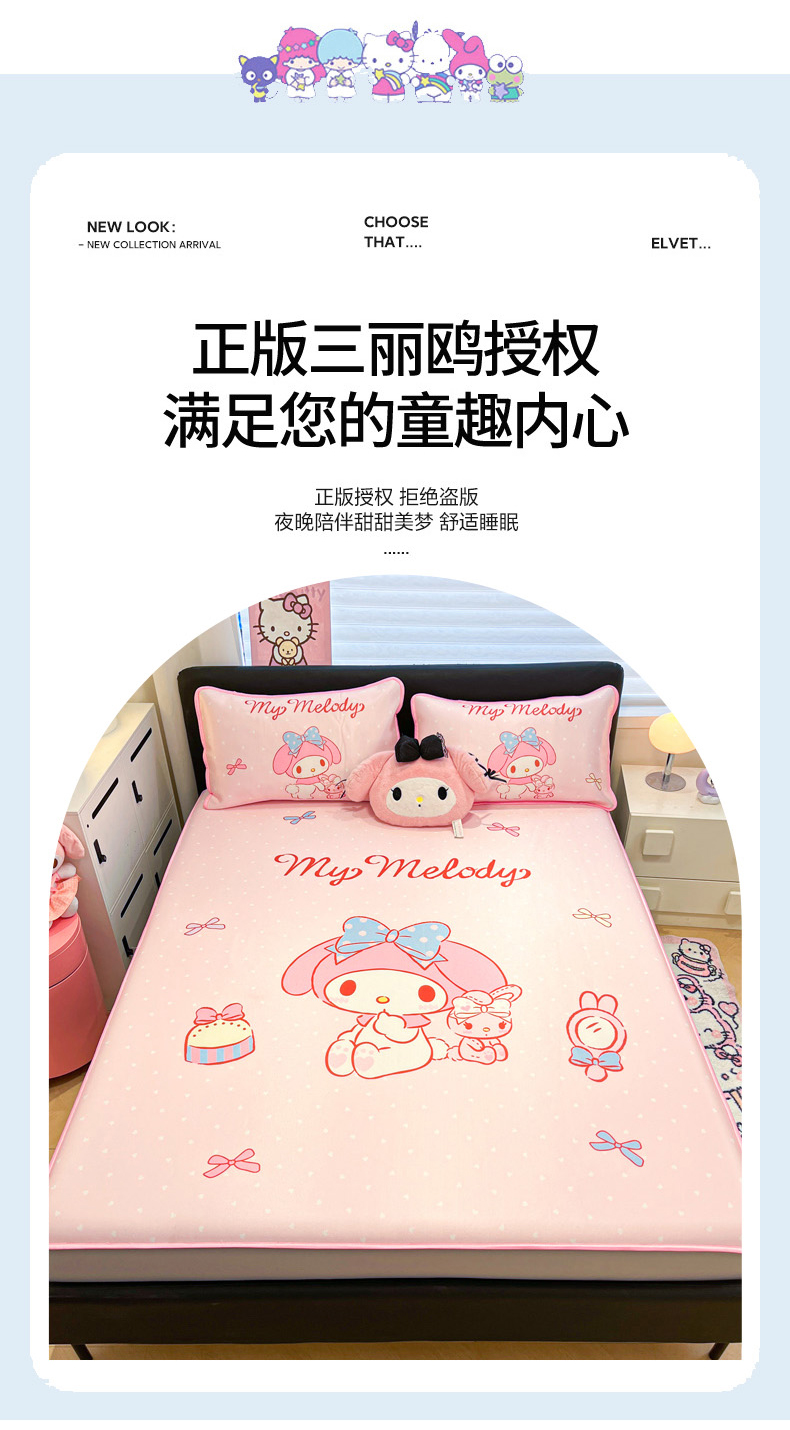 当前位置: 91家纺网 > 商品网购 > 床上用品 > 凉席 > 冰丝席 > 暮思家居 2026新款正版授权A类大版数码印花三丽鸥1200D冰丝凉席可组合仿锦氨夏被 床笠款-小兔美乐蒂