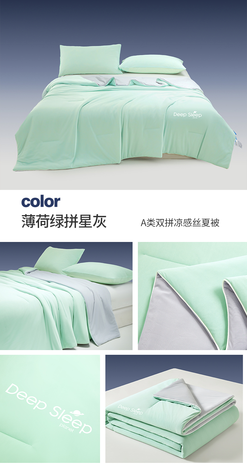 商品名称:玉相逢 2026新款深睡眠高克重凉感丝夏被夏凉被空调被 薄荷绿拼星灰