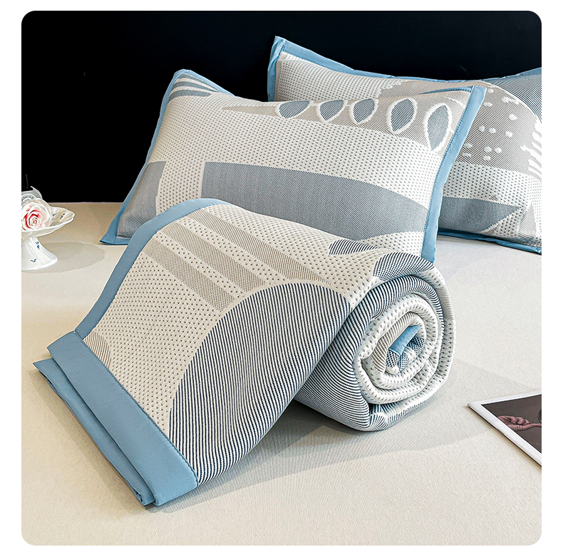 雅诗帛 2026新款PE凉感丝凉席三件套-几何 几何-蓝