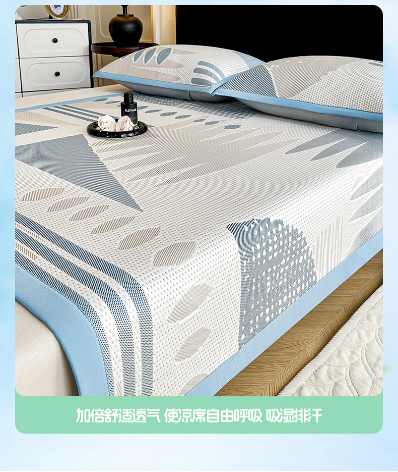 商品名称:雅诗帛 2026新款PE凉感丝凉席三件套-几何 几何-蓝
