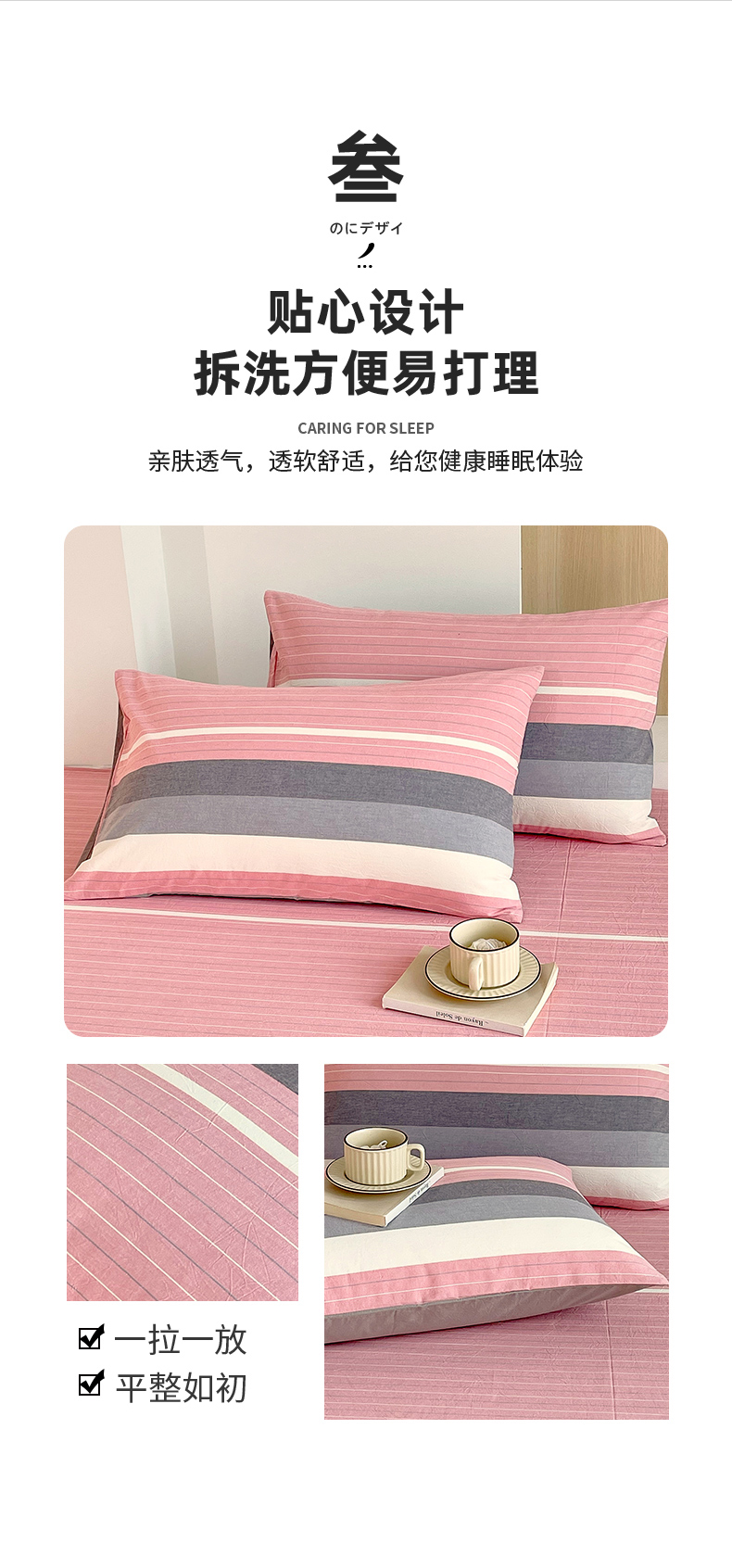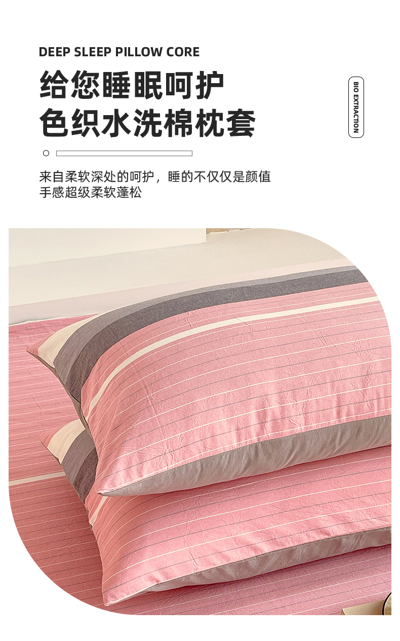 商品名称:春皖家纺 2026春夏新款全棉水洗棉单枕套枕套单件单品枕套 素雅-蔻粉