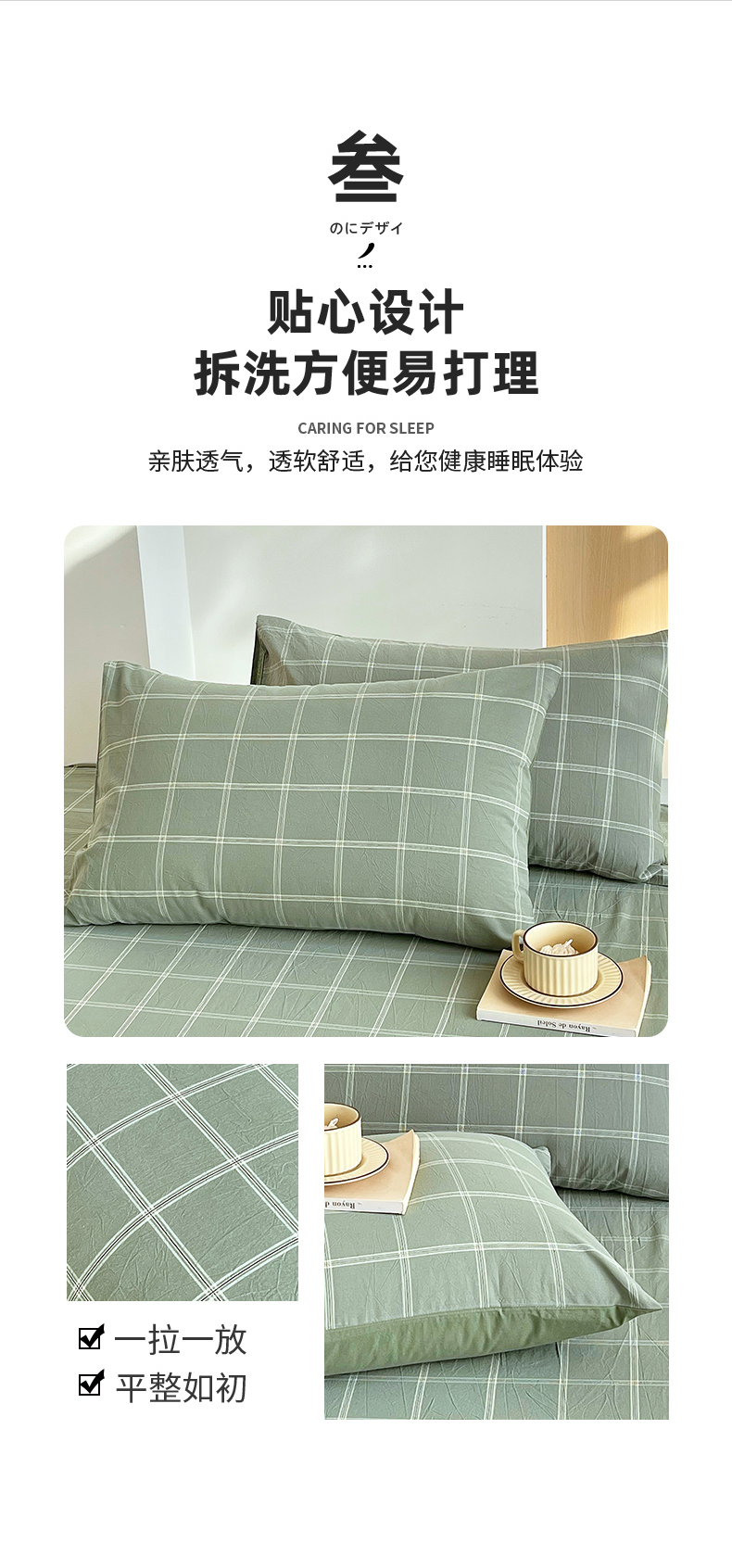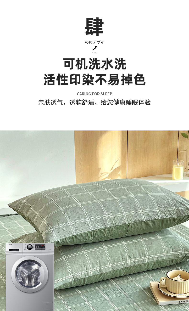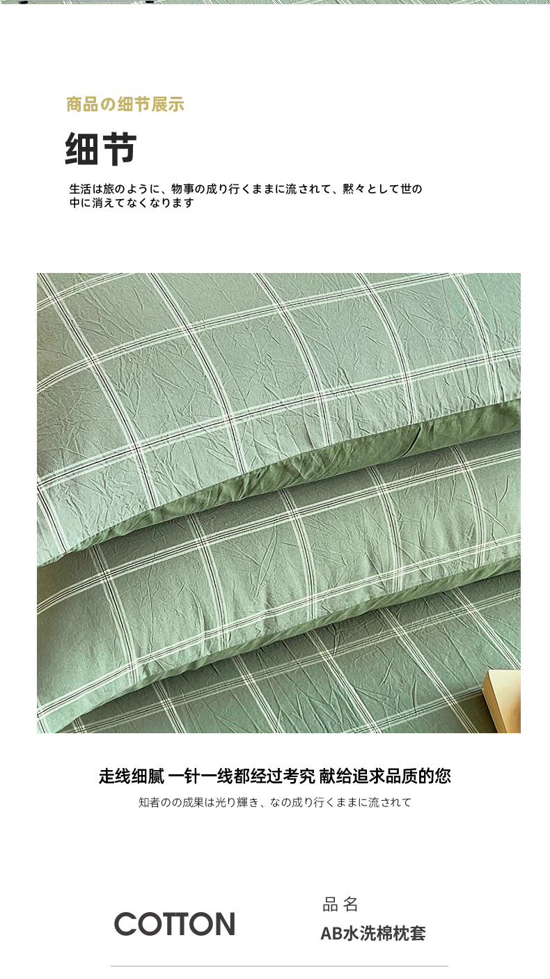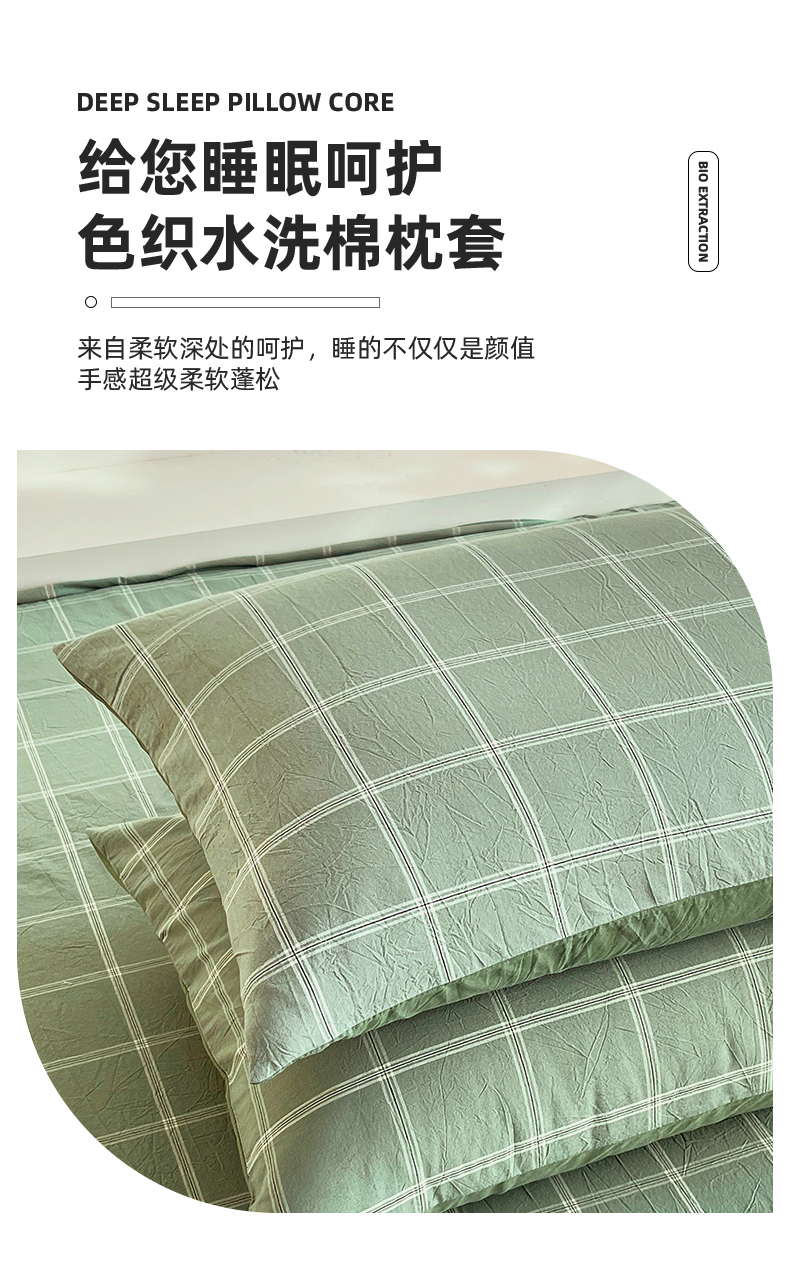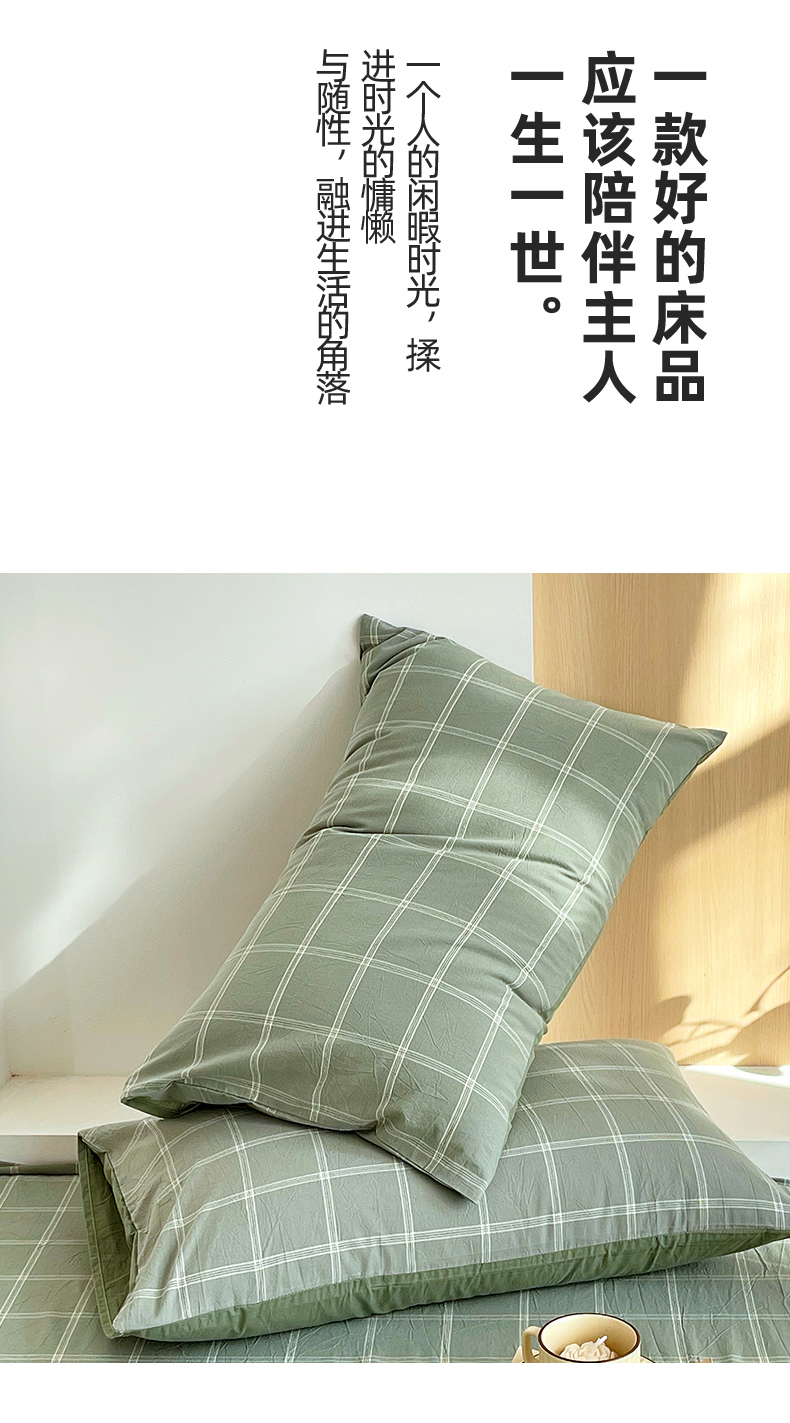 春皖家纺 2026春夏新款全棉水洗棉单枕套枕套单件单品枕套 素雅-韵绿
