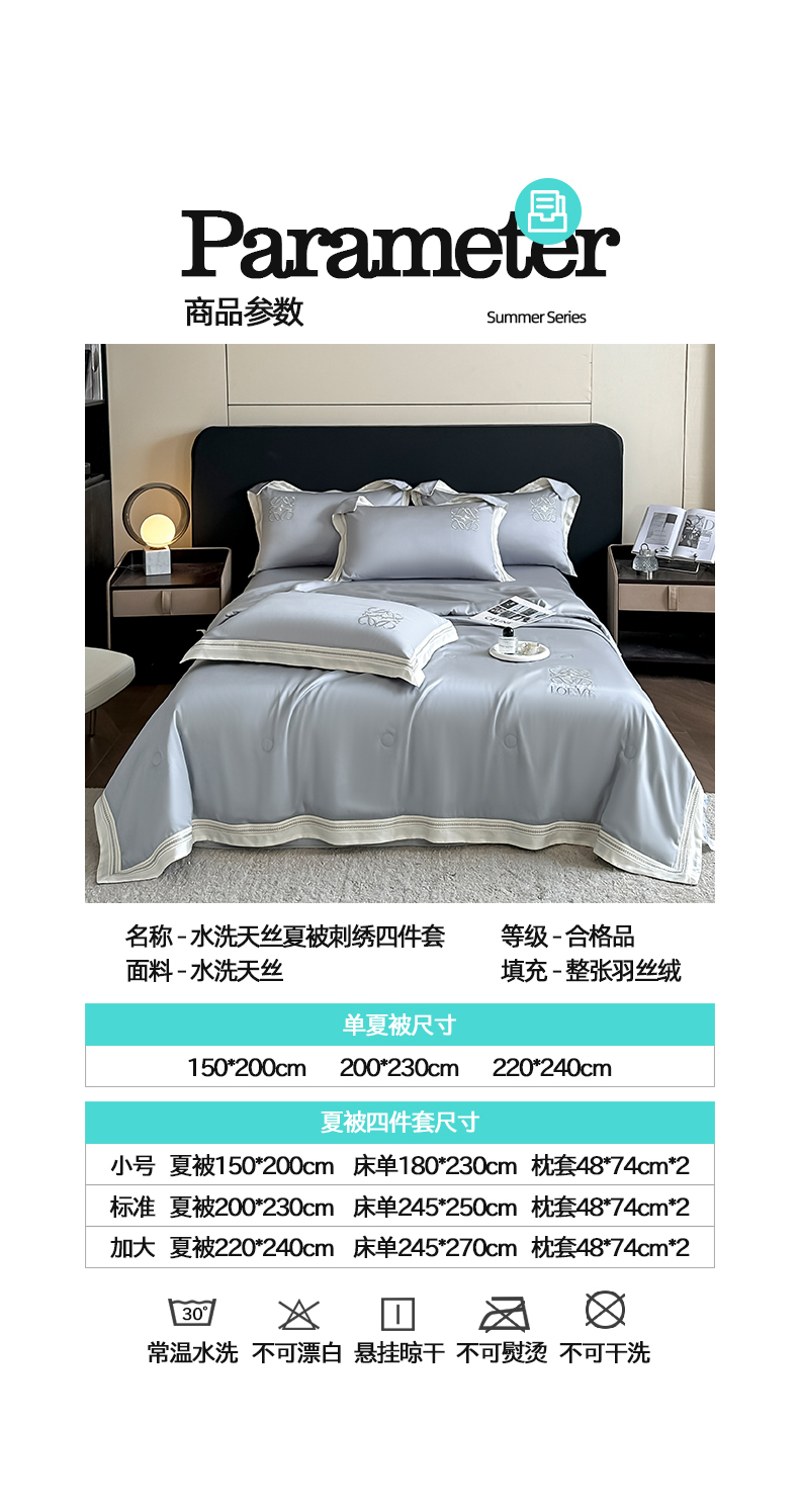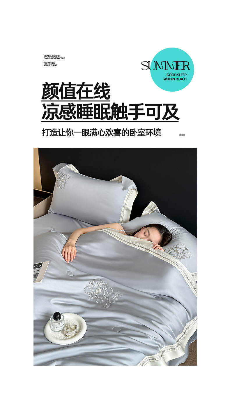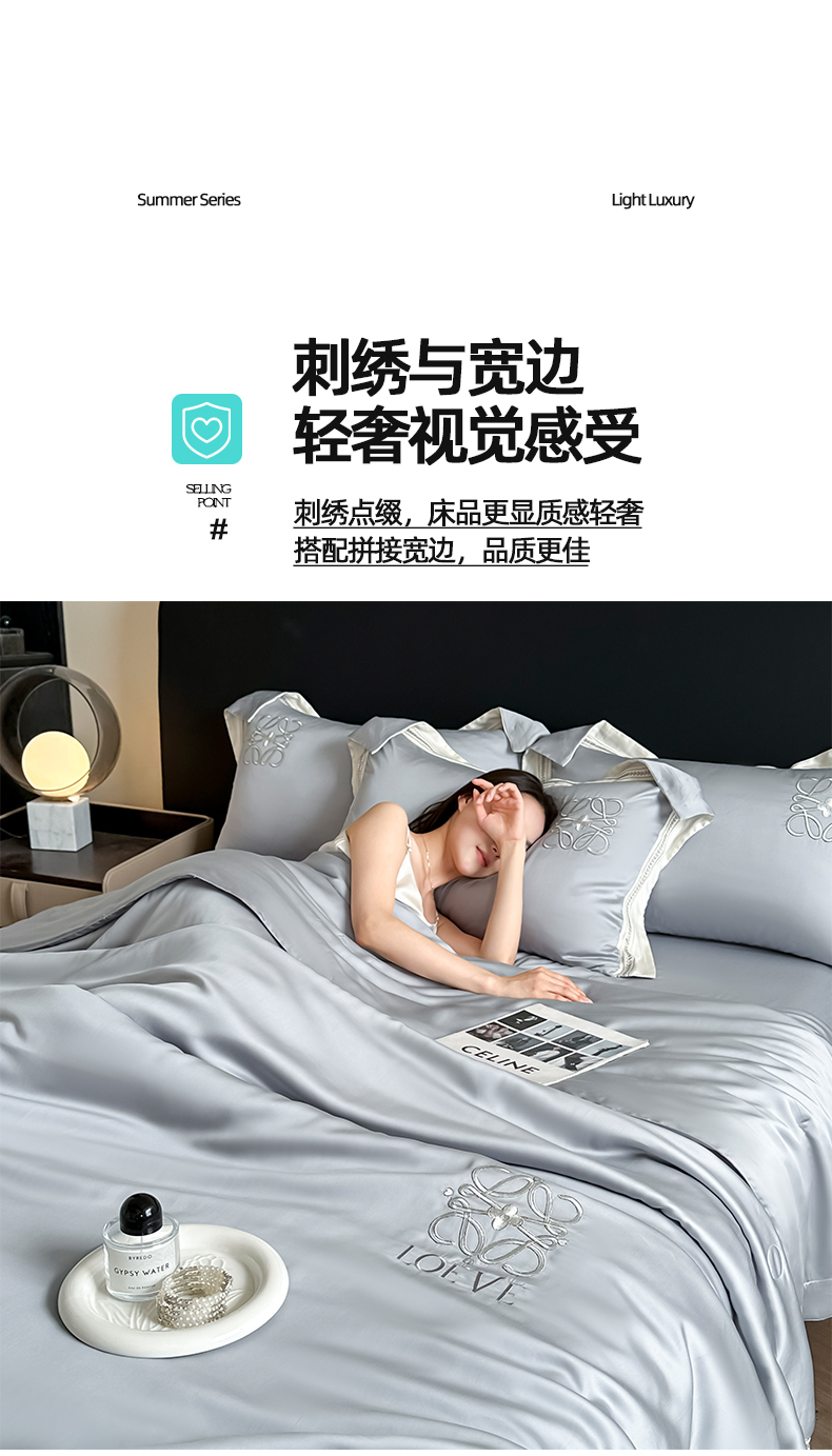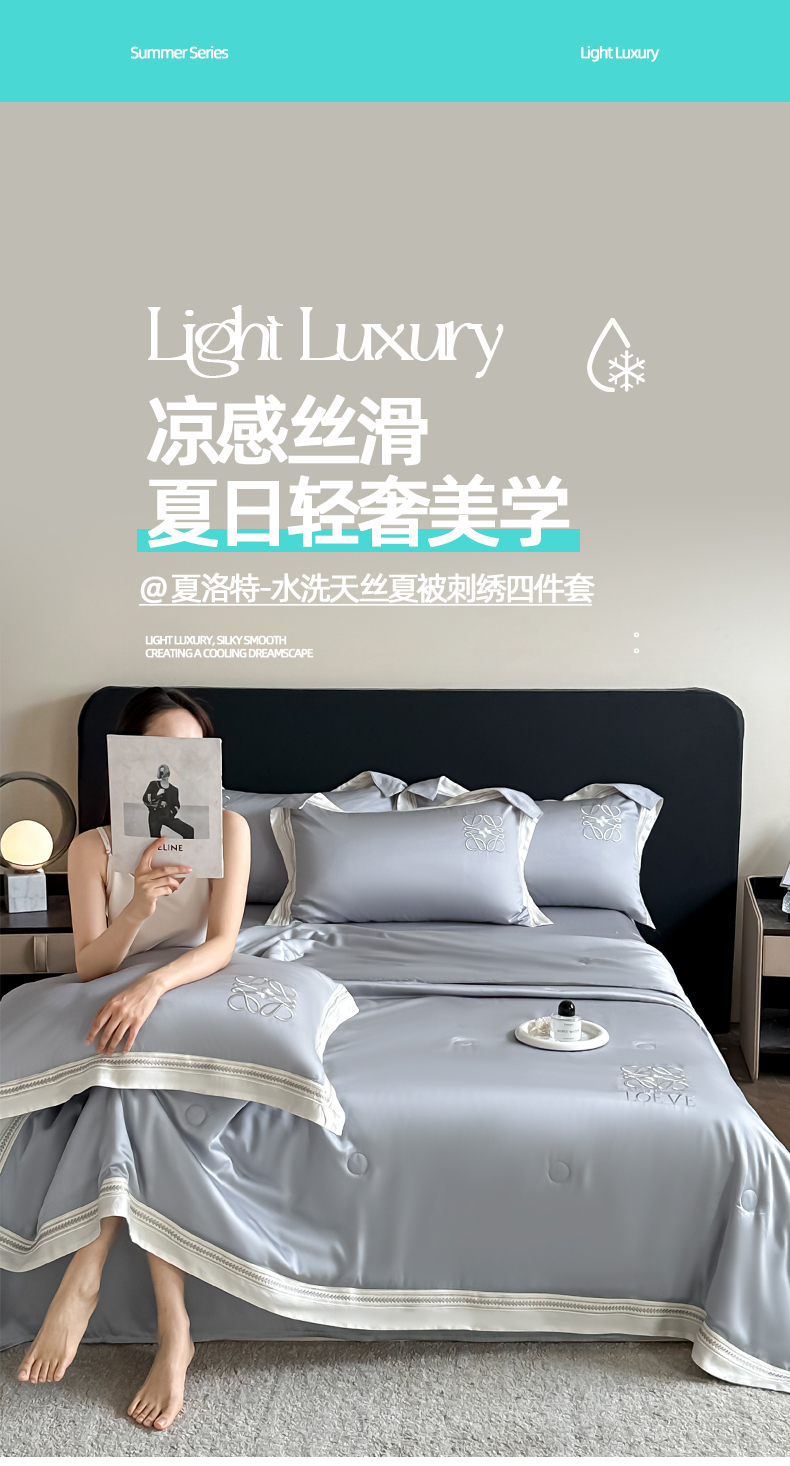 当前位置: 91家纺网 > 商品网购 > 床品套件 > 四件套 > 水洗真丝四件套 > 置顶家纺 2026新款水洗天丝夏被刺绣四件套-夏洛特 夏洛特-瓷器灰