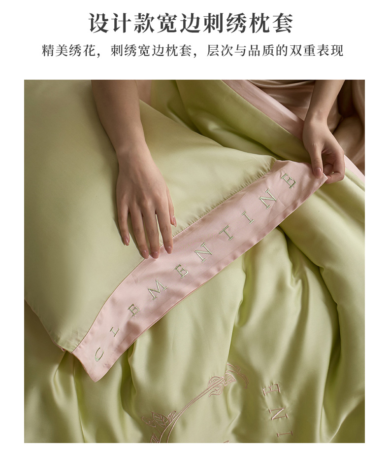商品名称:爱缦 2026新款60s兰精天丝四件套-马吉拉系列-风格一 绿精灵