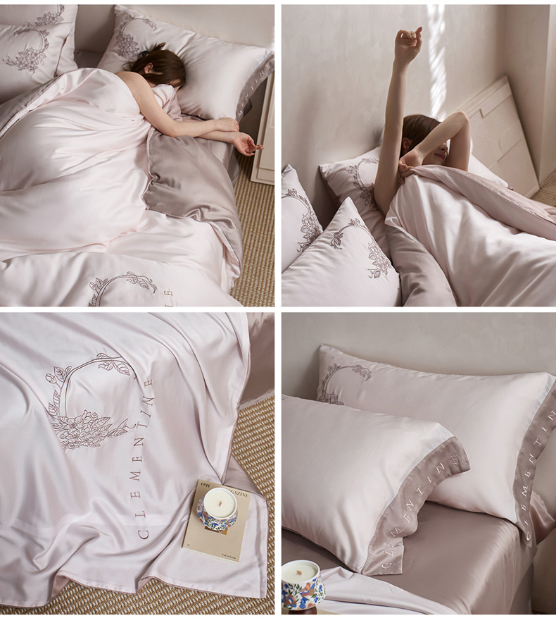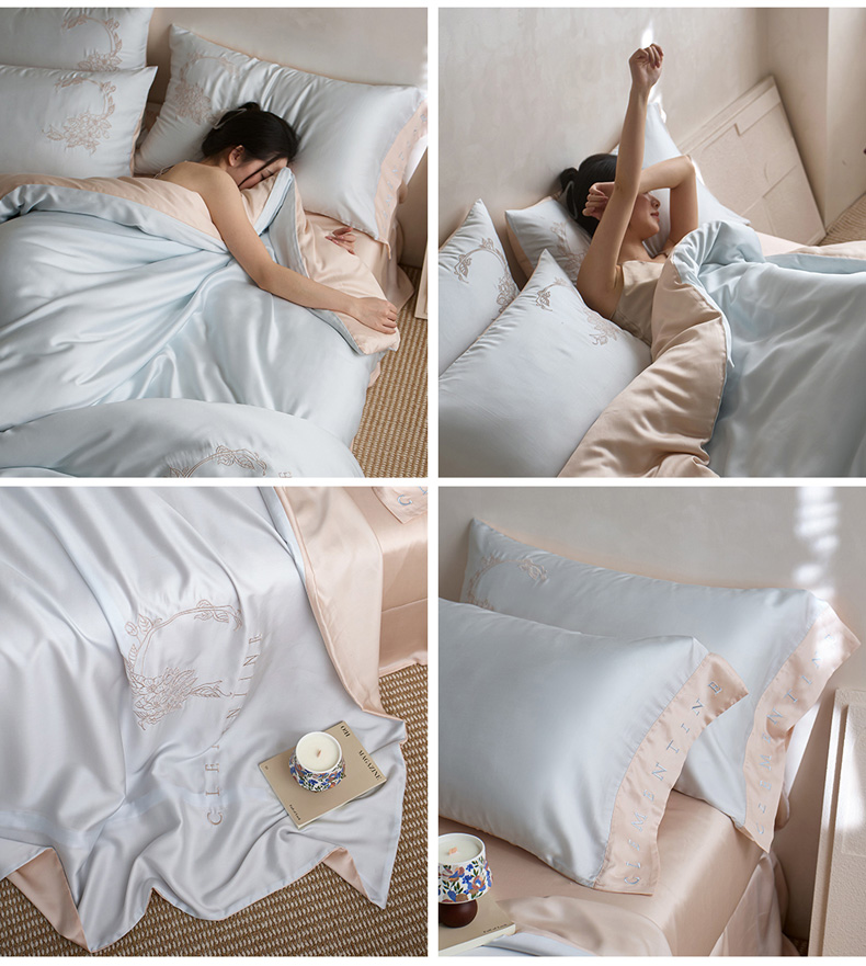 (总)爱缦 新款60支莱赛尔四件套-至真系列,蓝米驼,米白粉,浅紫,玉粉