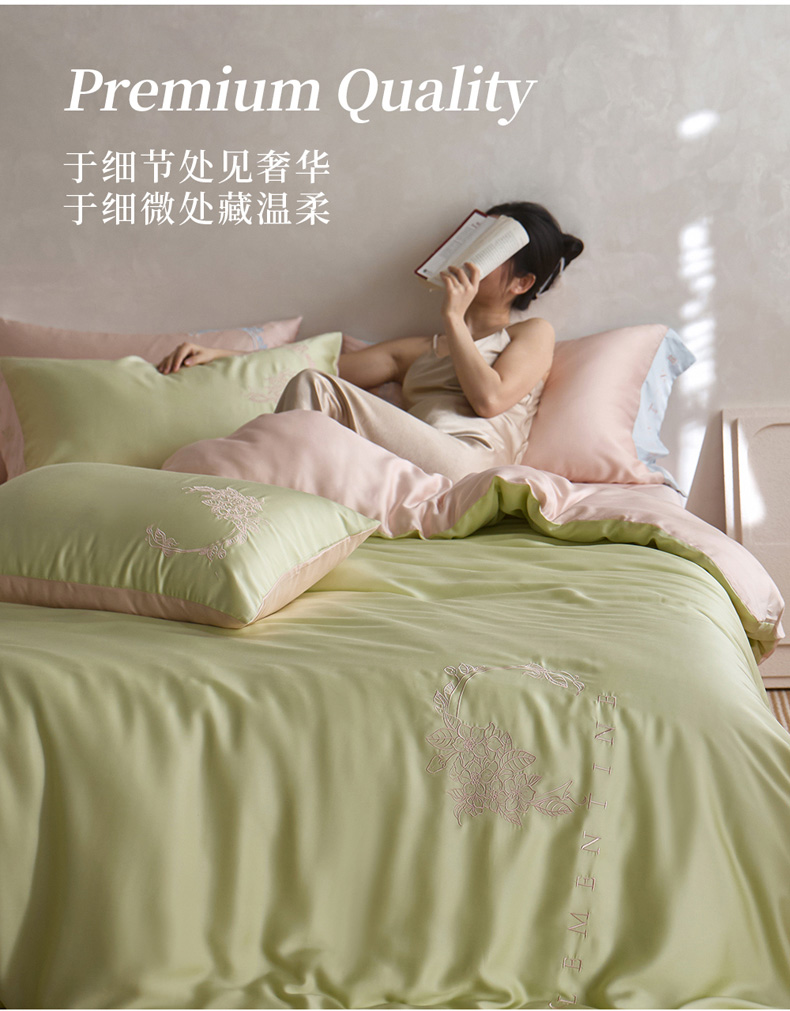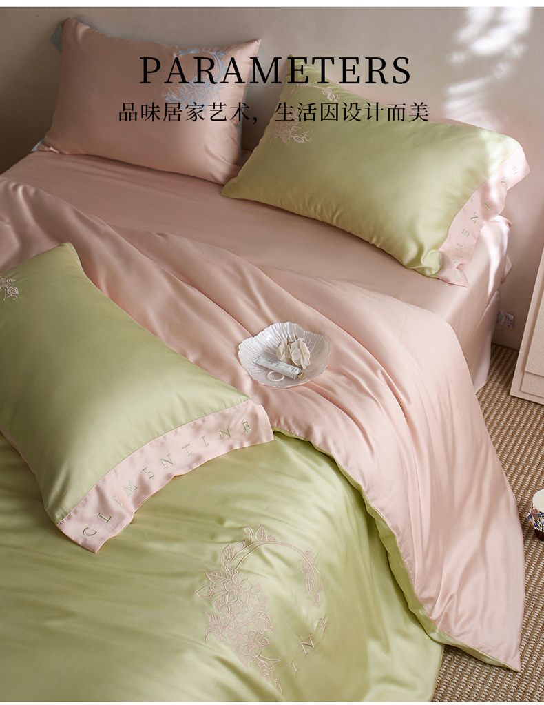 (总)爱缦 2025新款100支新疆长绒棉刺绣四件套-时光系列,时光-薄荷青,时光-芙蓉粉,时光-元气白桃