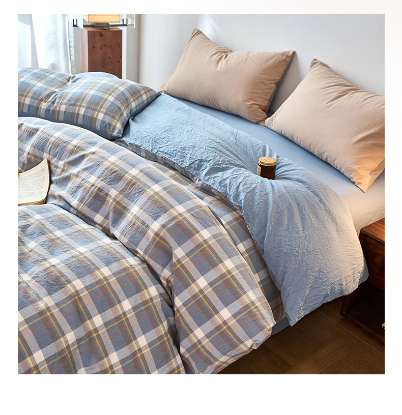 春皖家纺 2026春夏新款全棉纯棉水洗棉单被套被套单件单品被套 素雅-蓝格