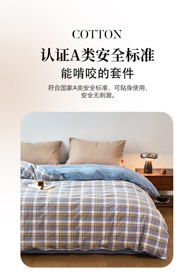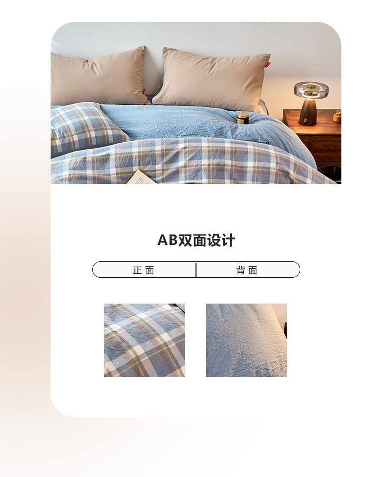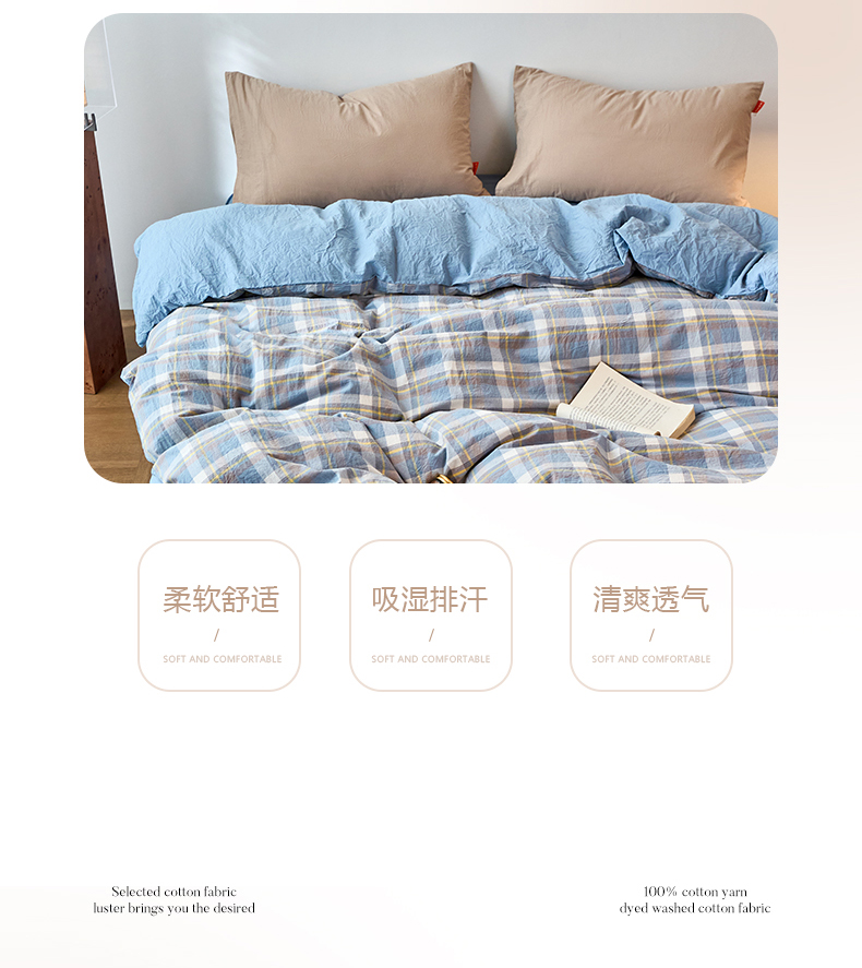 商品名称:春皖家纺 2026春夏新款全棉纯棉水洗棉单被套被套单件单品被套 素雅-蓝格