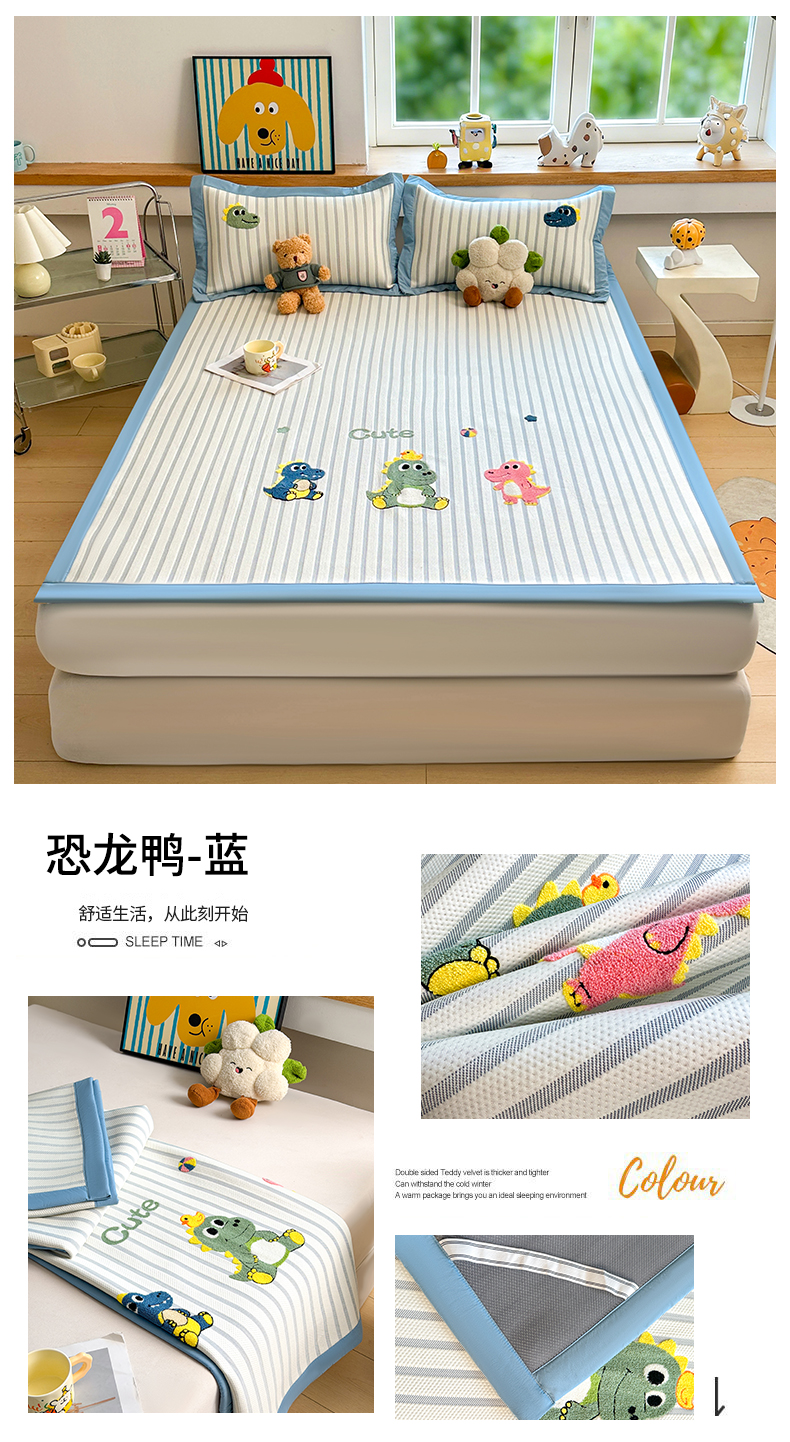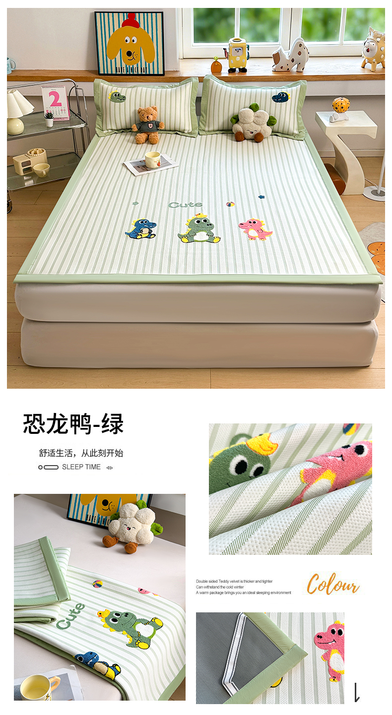 (总)雯豆家纺 2026新款PE中分子毛巾绣凉席三件套平铺席子卡通绣花条席,奔腾小马-蓝,奔腾小马-粉,发财小马-蓝,发财小马-绿,恐龙鸭-蓝,恐龙鸭-绿,软糖小KT-粉,软糖小KT-绿,三色熊-蓝,三色熊-绿,树懒-蓝,树懒-绿