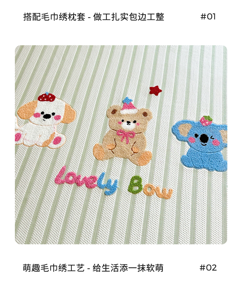 (总)雯豆家纺 2026新款PE中分子毛巾绣凉席三件套平铺席子卡通绣花条席,奔腾小马-蓝,奔腾小马-粉,发财小马-蓝,发财小马-绿,恐龙鸭-蓝,恐龙鸭-绿,软糖小KT-粉,软糖小KT-绿,三色熊-蓝,三色熊-绿,树懒-蓝,树懒-绿
