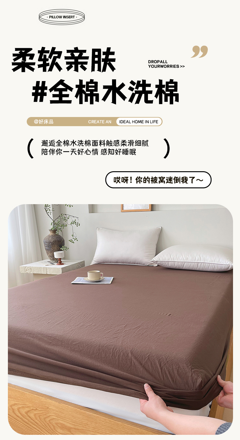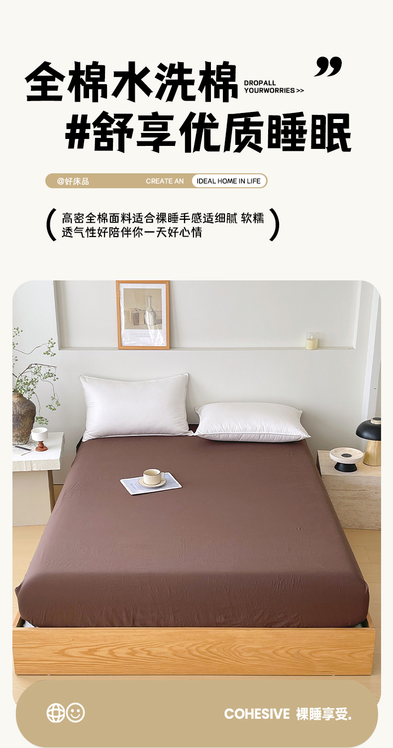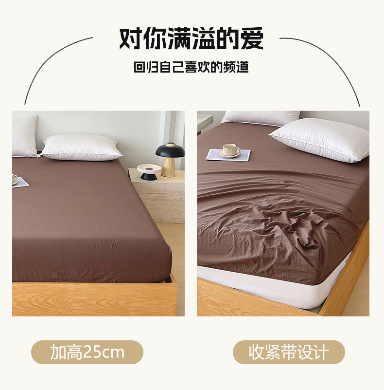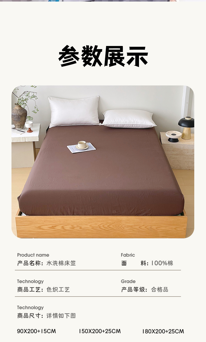 春皖家纺 2026春夏新款全棉纯棉水洗棉单品系列床笠单件床笠单品-B版单床笠 慕斯棕