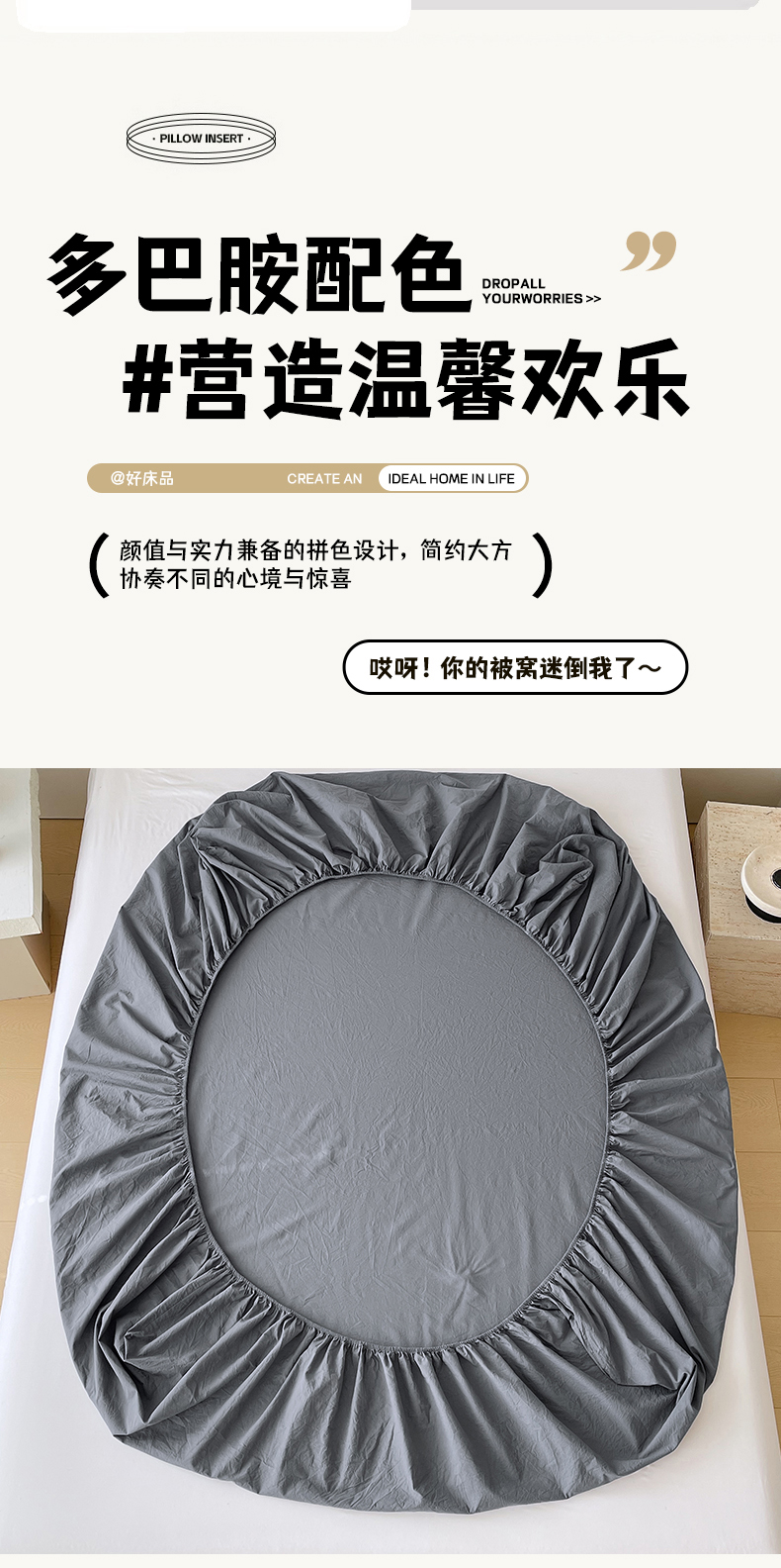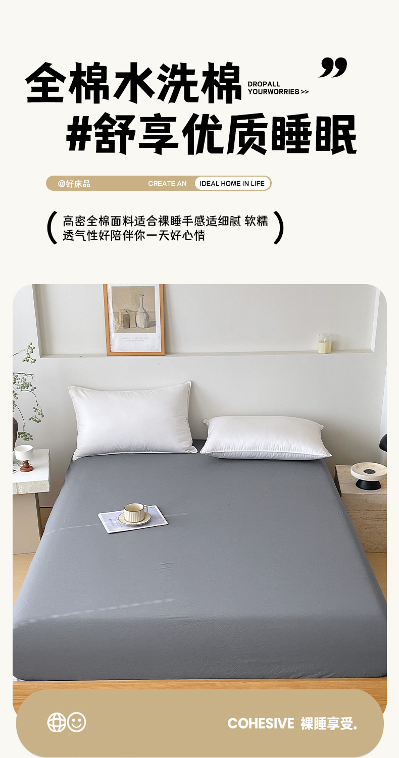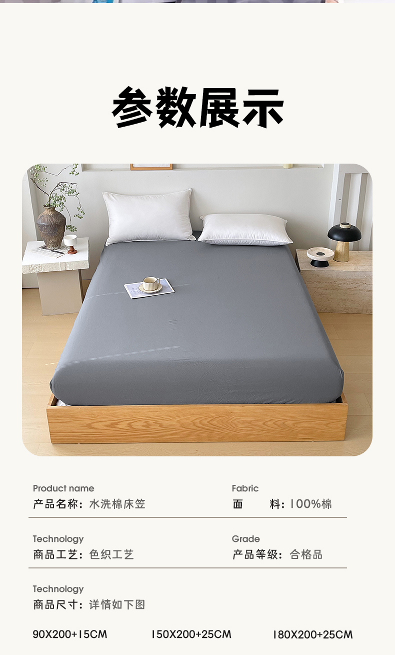 商品名称:春皖家纺 2026春夏新款全棉纯棉水洗棉单品系列床笠单件床笠单品-B版单床笠 素雅墨灰