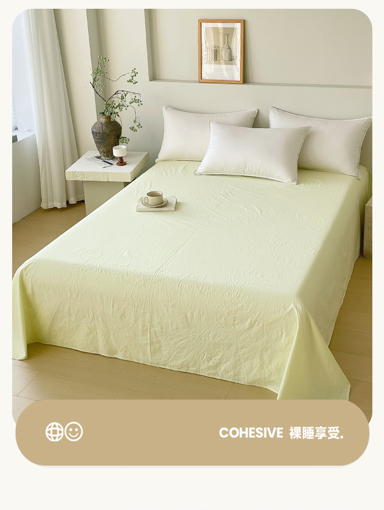 商品名称:春皖家纺 2026春夏新款全棉纯棉水洗棉单品系列床单单件床单单品-B版单床单 素雅淡黄