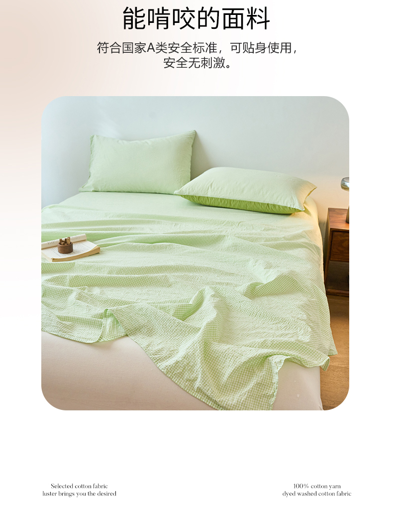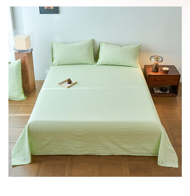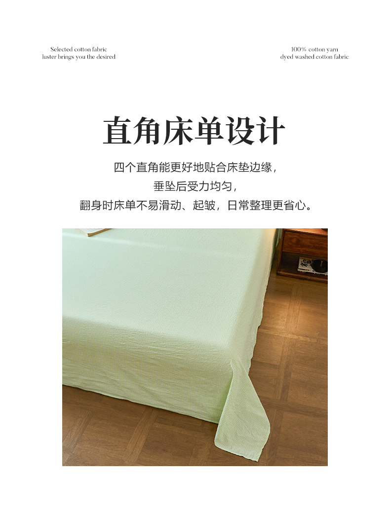 春皖家纺 2026春夏新款全棉纯棉水洗棉单品系列床单单件床单单品-A版单床单 嫩绿格