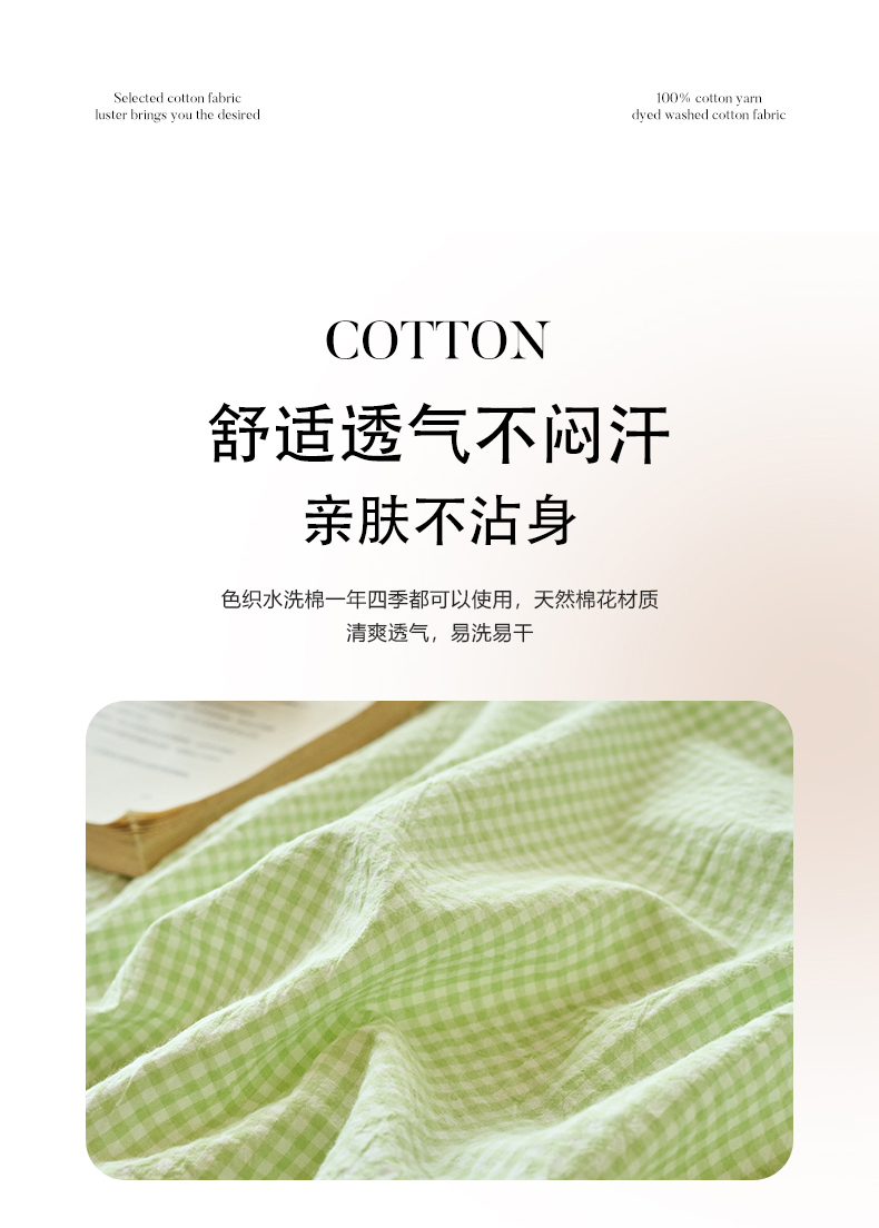 商品名称:春皖家纺 2026春夏新款全棉纯棉水洗棉单品系列床单单件床单单品-A版单床单 嫩绿格