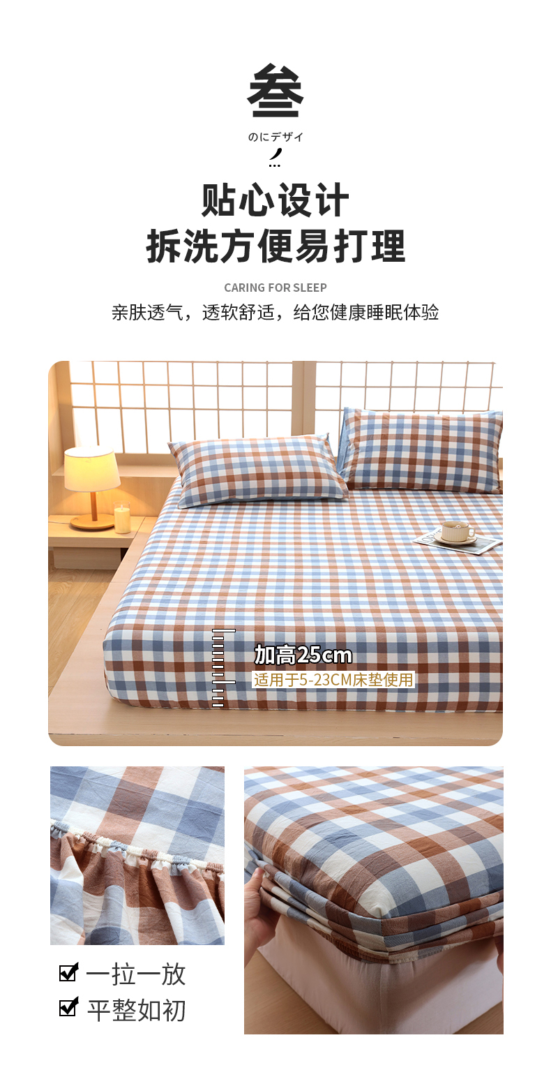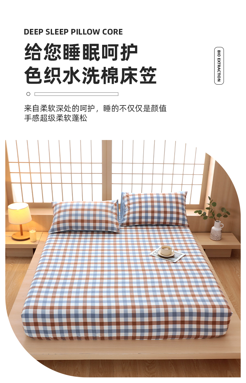 春皖家纺 2026春夏新款全棉纯棉水洗棉单品系列床笠单件床笠单品-A版单床笠 翠竹-彩格