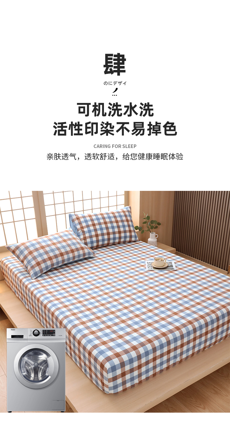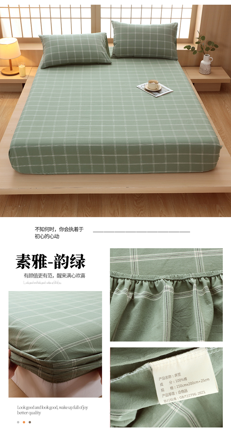 商品名称:春皖家纺 2026春夏新款全棉纯棉水洗棉单品系列床笠单件床笠单品-A版单床笠 翠竹-彩格