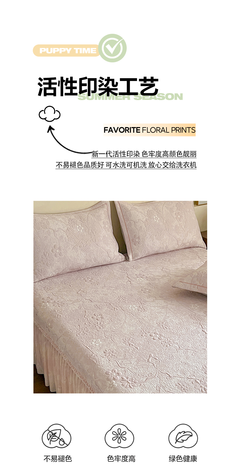 (总)宅家居 2026春夏新款PE高分子复合软凉席豆豆席大床裙三件套-小花系列,小花-粉色,小花-灰色,小花-卡其,小花-绿色,小花-天蓝,小花-紫色
