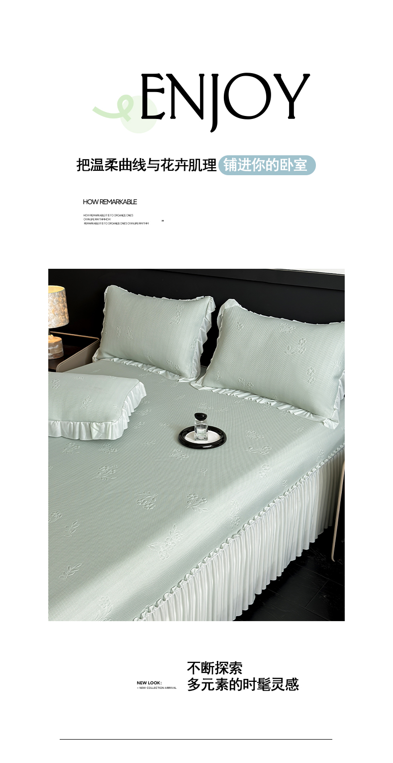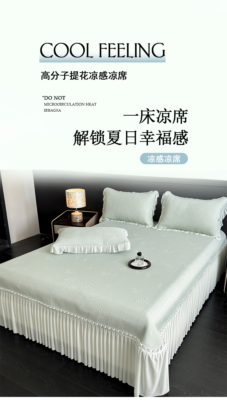 (总)宅家居 2026春夏新款PE高分子复合软提花凉席豆豆席大床裙三件套-暗香系列,暗香-豆沙,暗香-灰色,暗香-蓝色,暗香-绿色,暗香-香槟