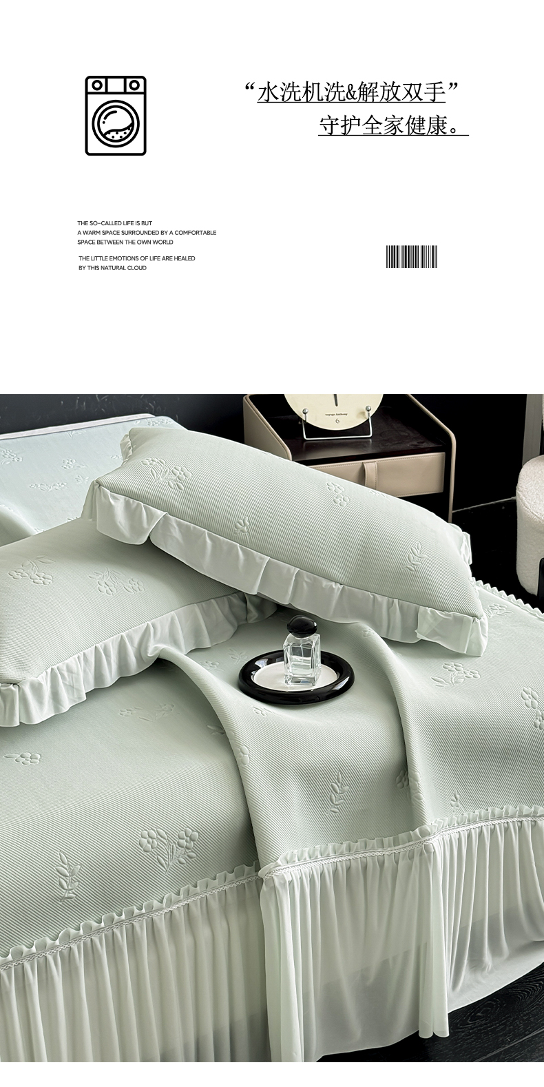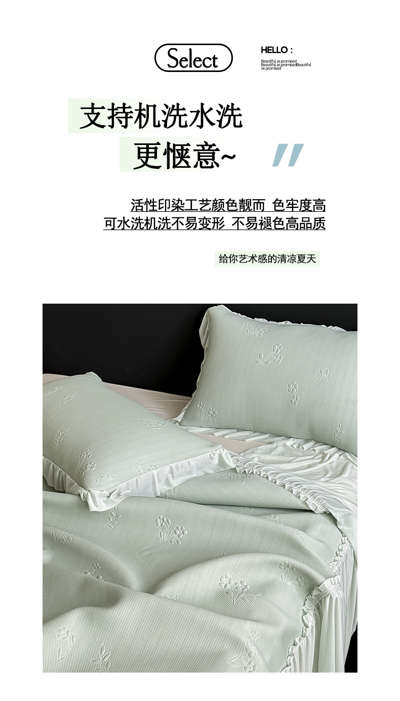商品名称:宅家居 2026春夏新款PE高分子复合软凉席豆豆席大床裙三件套-小花系列 小花-绿色
