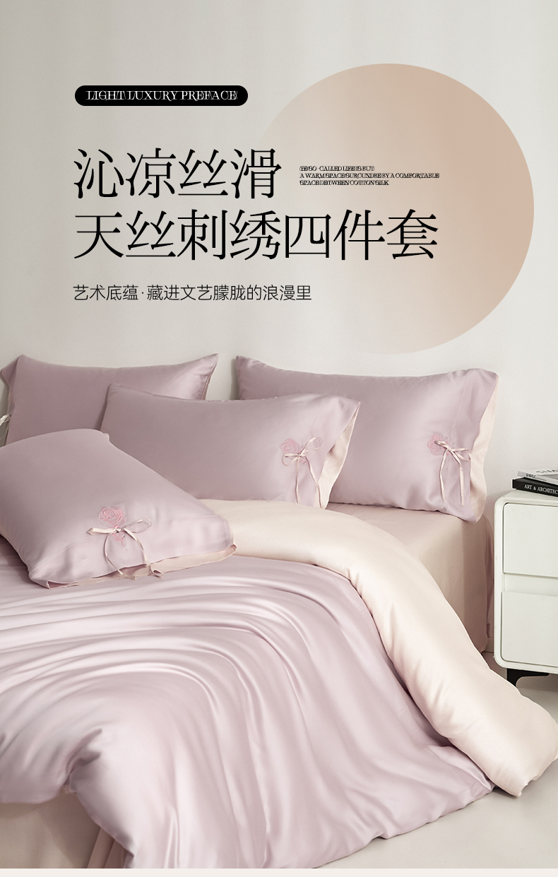 当前位置: 91家纺网 > 商品网购 > 床品套件 > 四件套 > 莱赛尔四件套 > DC 2026新款天丝玫瑰压线抽绳四件套--日落玫瑰系列 日落玫瑰-素粉+杏白