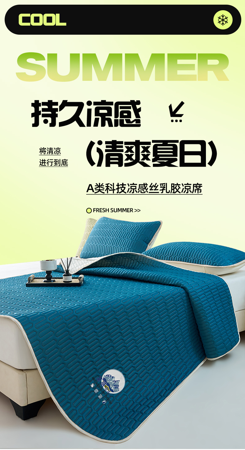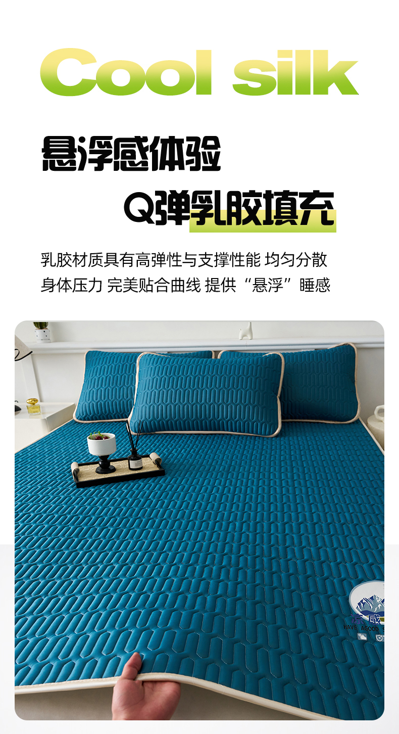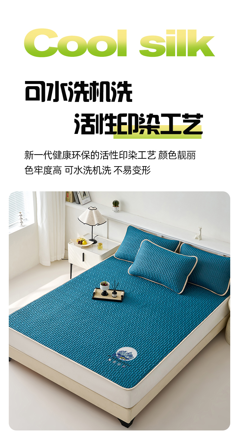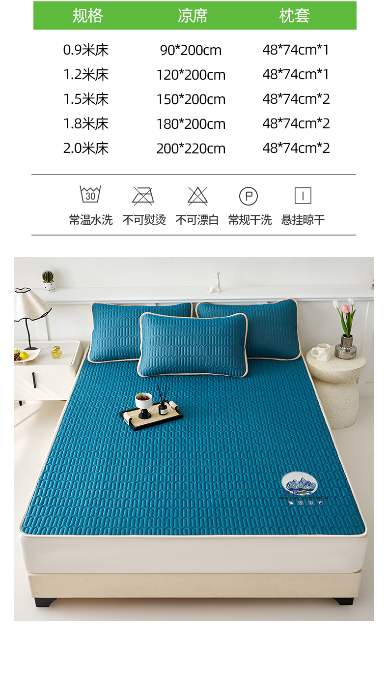 (总)奇丝雅 2026夏季A类纯色乳胶凉席冰丝席家用双人冰丝凉席可机洗夏天空调席三件套-场景二,组合图仅供展示不可下单,富士山-典雅蓝,富士山-果绿,富士山-墨绿,富士山-银灰,富士山-玉色