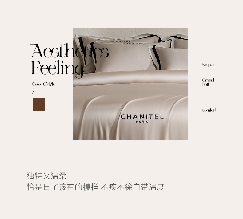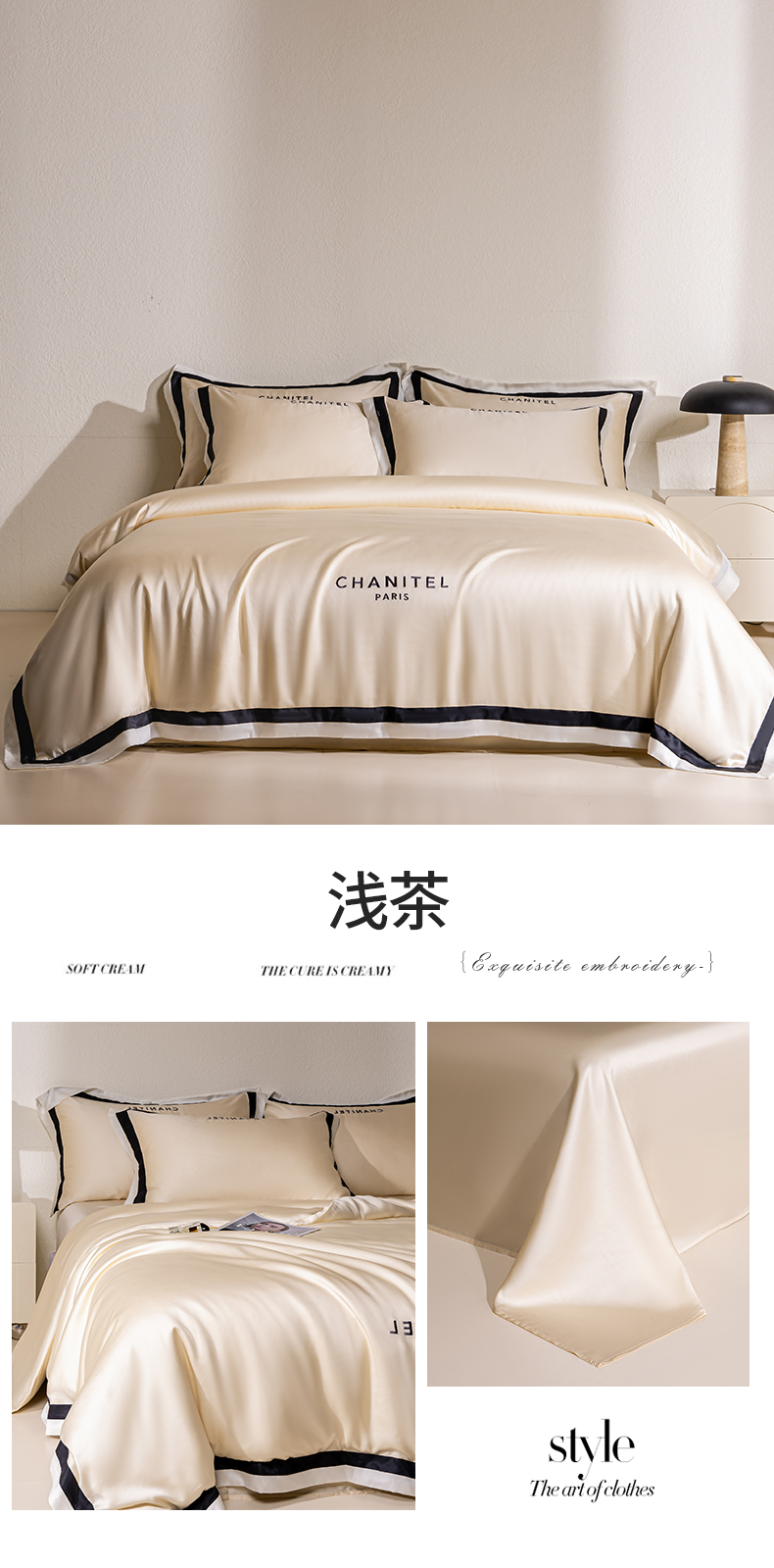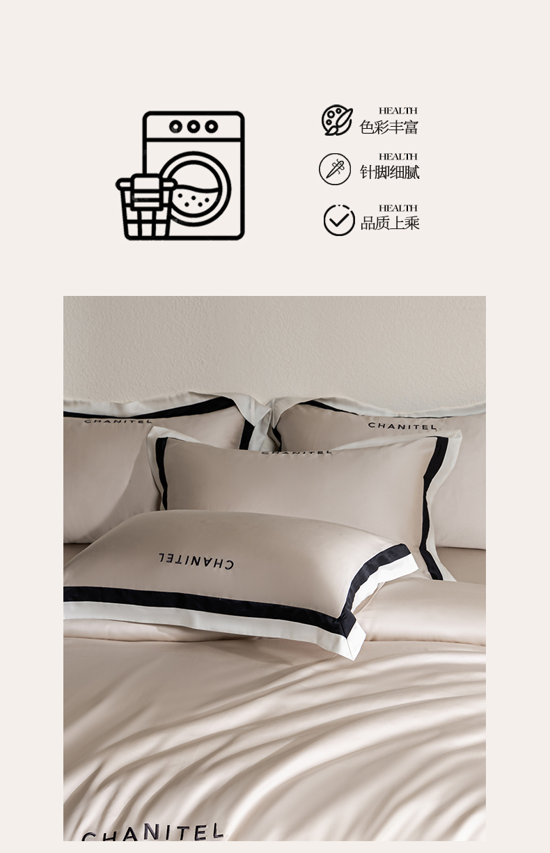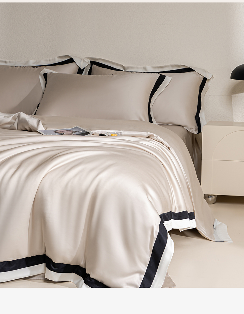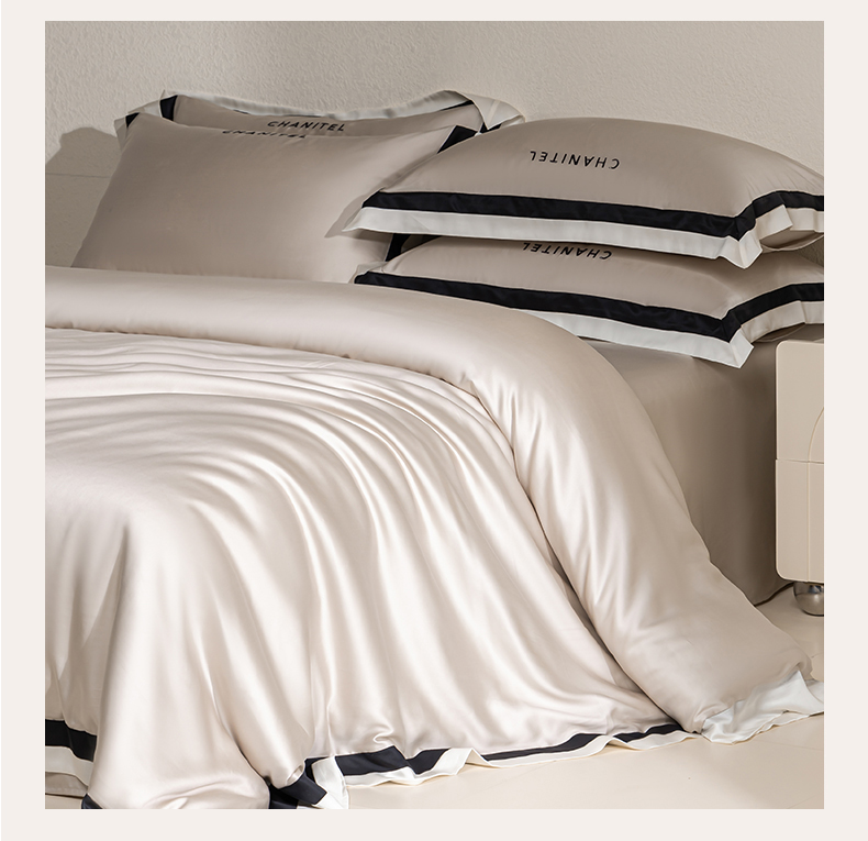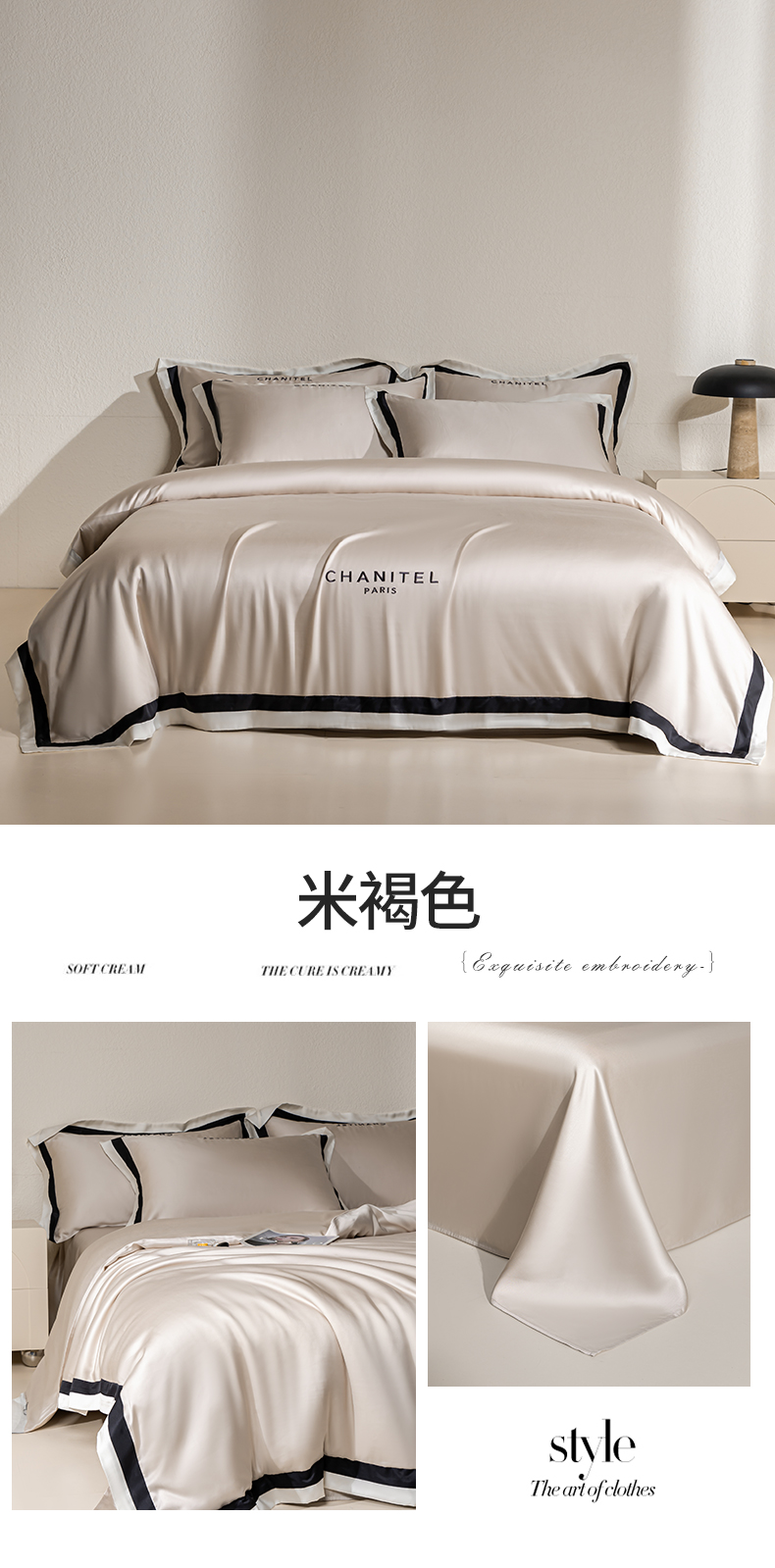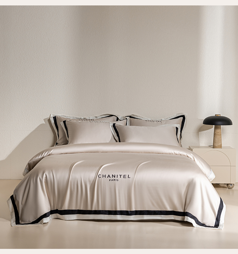 商品名称:DC 2026新款天丝刺绣宽边双色边四件套--露娜系列 露娜-米褐色