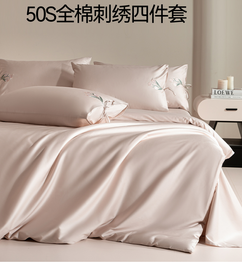 当前位置: 91家纺网 > 商品网购 > 床品套件 > 四件套 > 全棉普通四件套 > DC 2026新款50S全棉花卉刺绣四件套--花屿系列 花屿-素粉(郁金香)