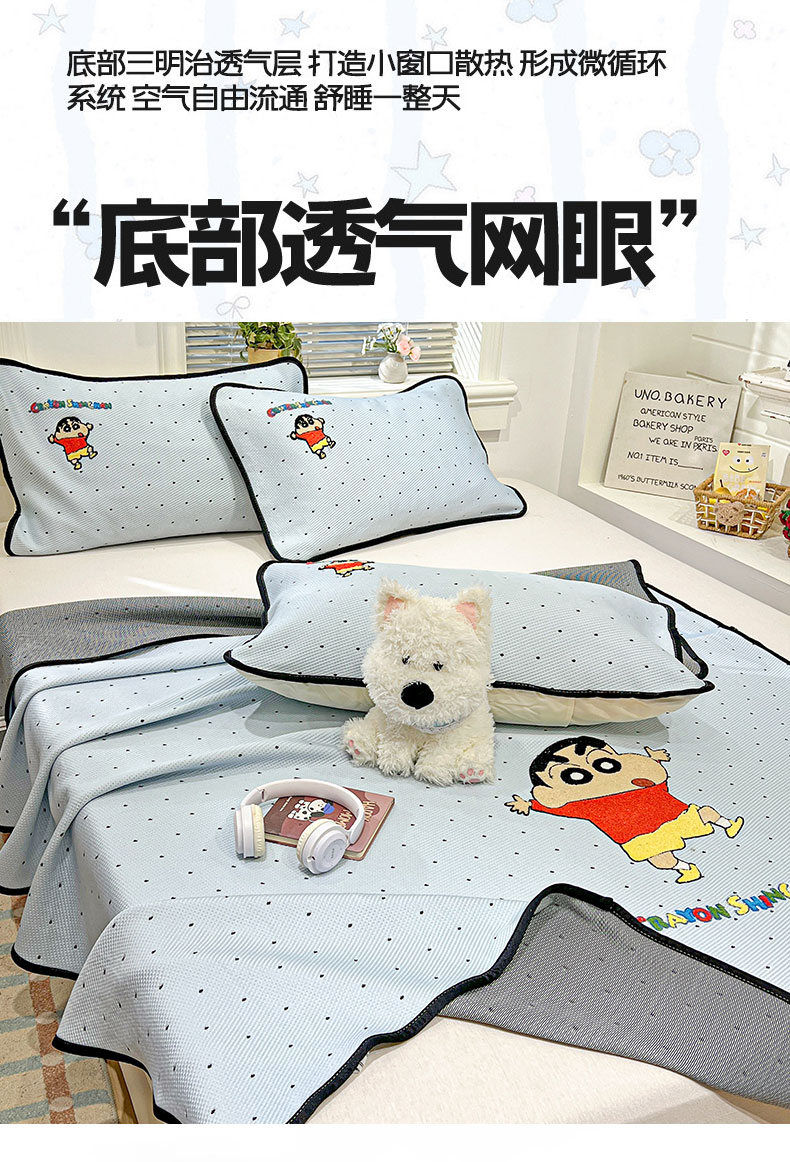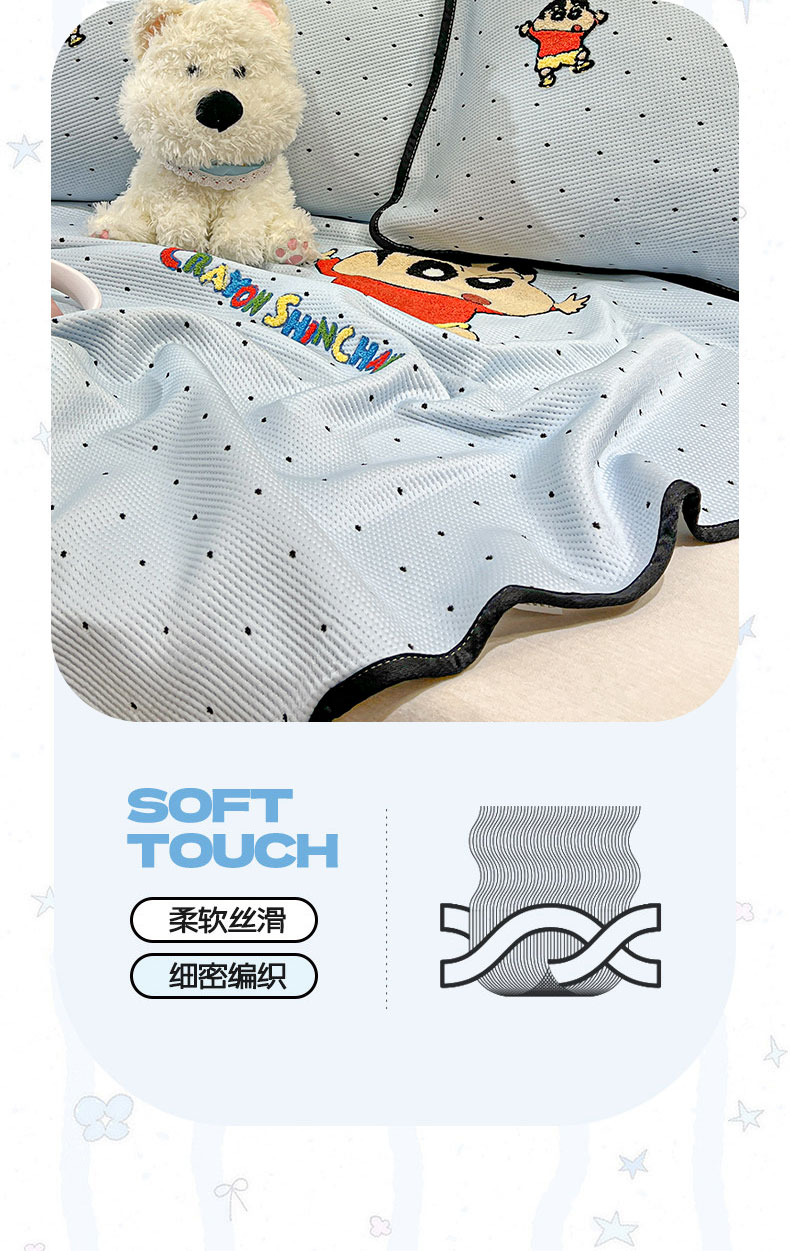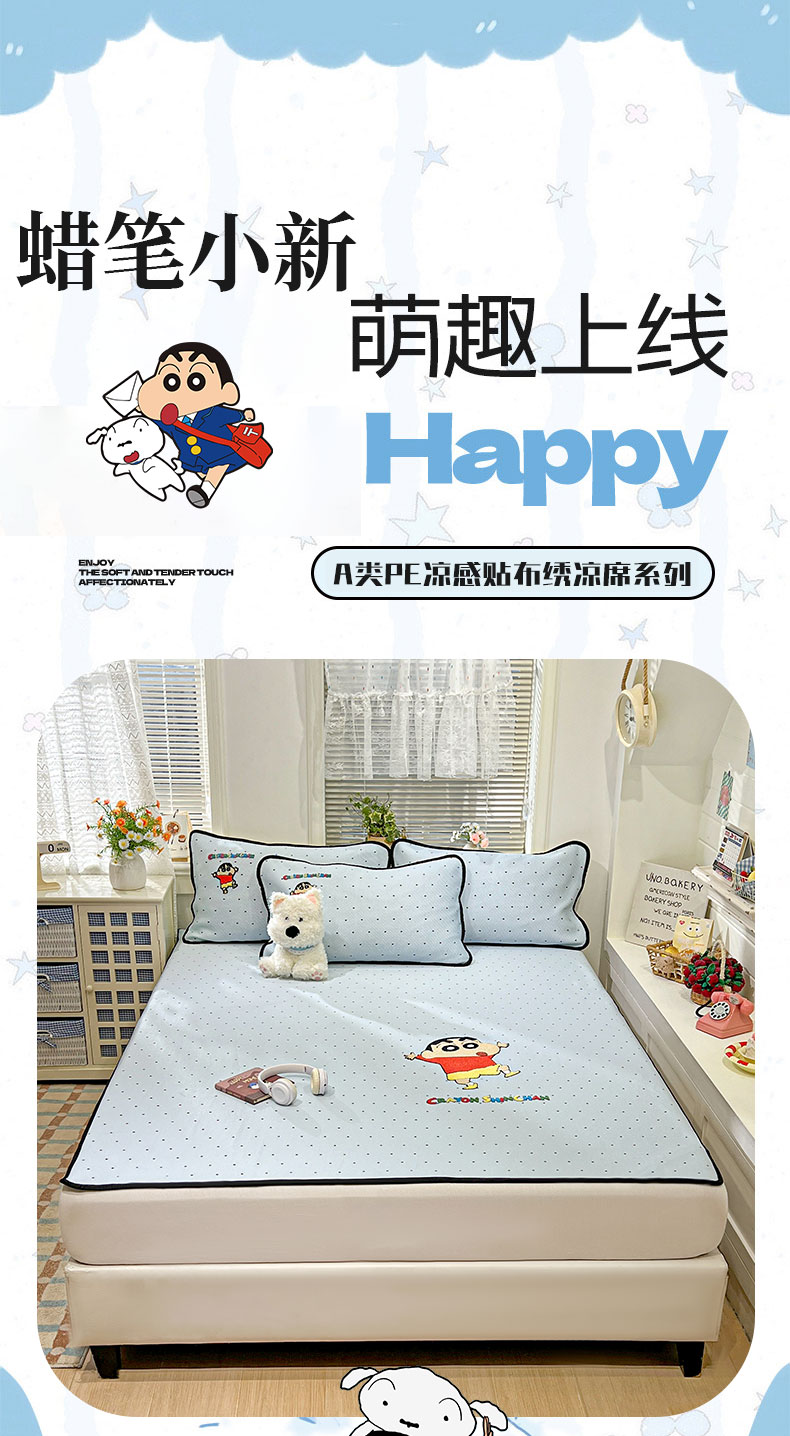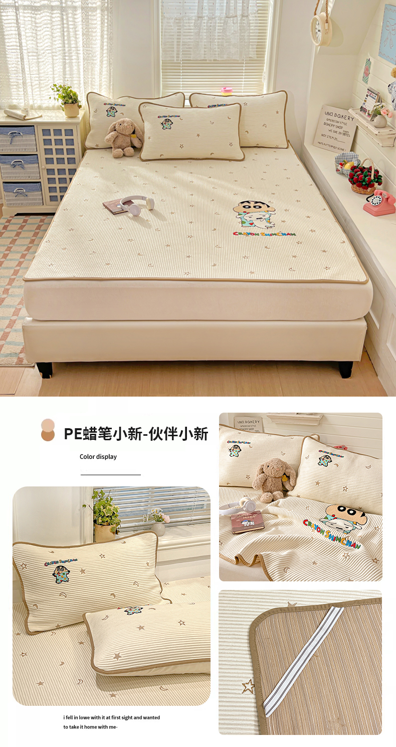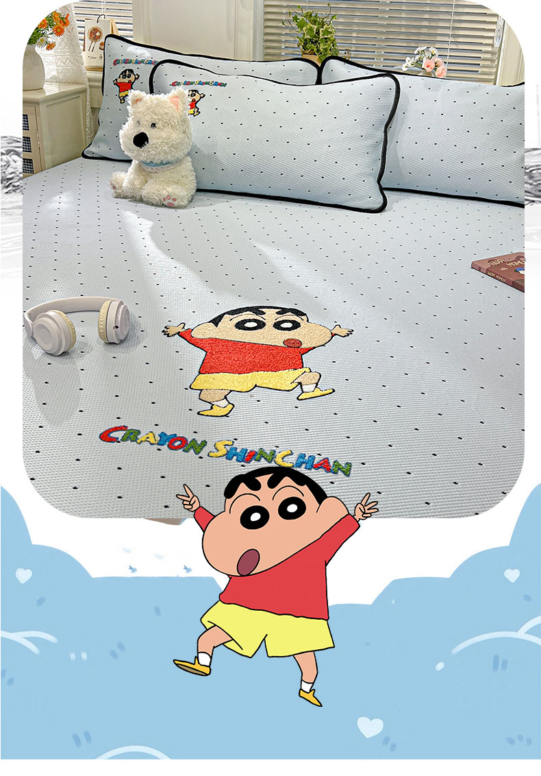 当前位置: 91家纺网 > 商品网购 > 床上用品 > 凉席 > 凉席套件 > (总)桃子家居 2026新款A类PE凉感卡通蜡笔小新毛巾绣高端工艺空调软席凉席三件套系列