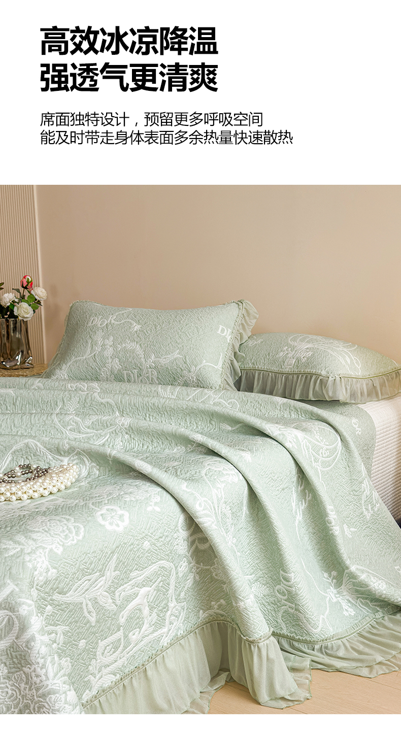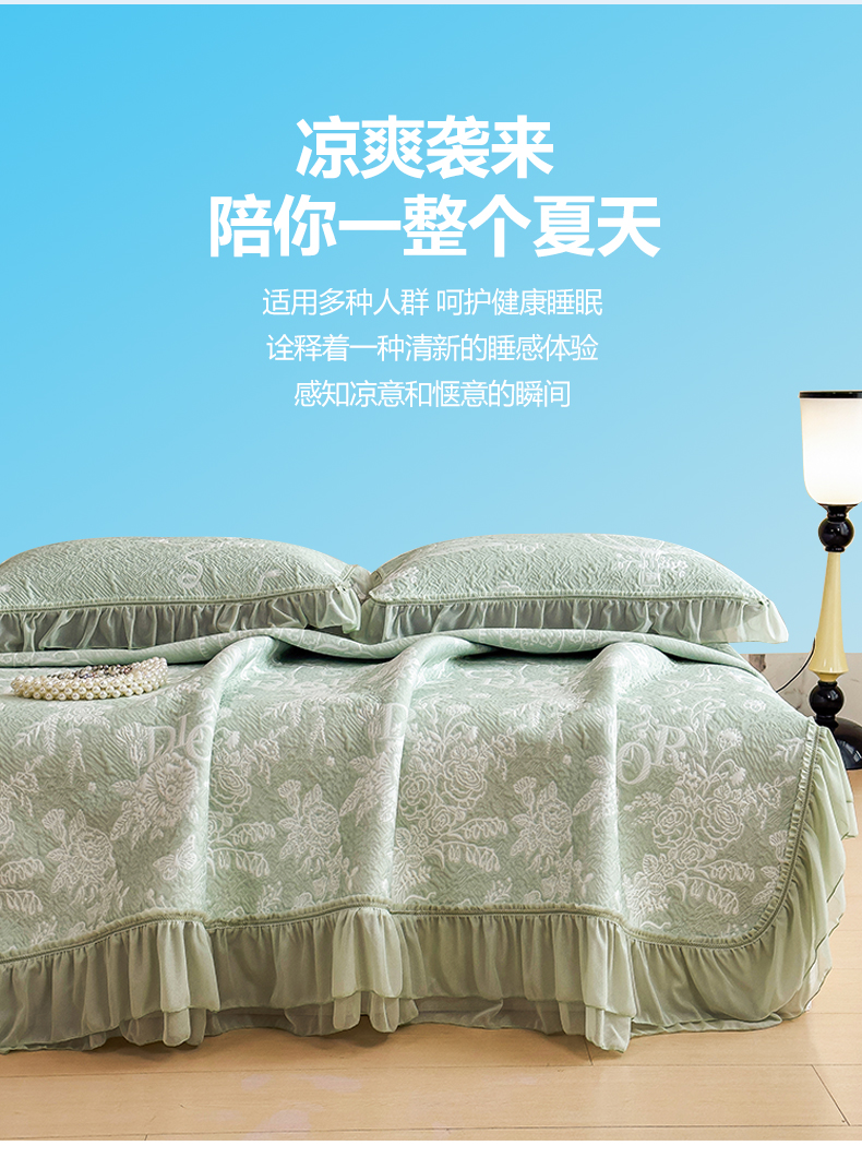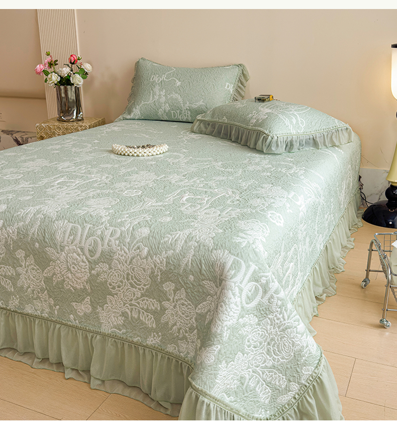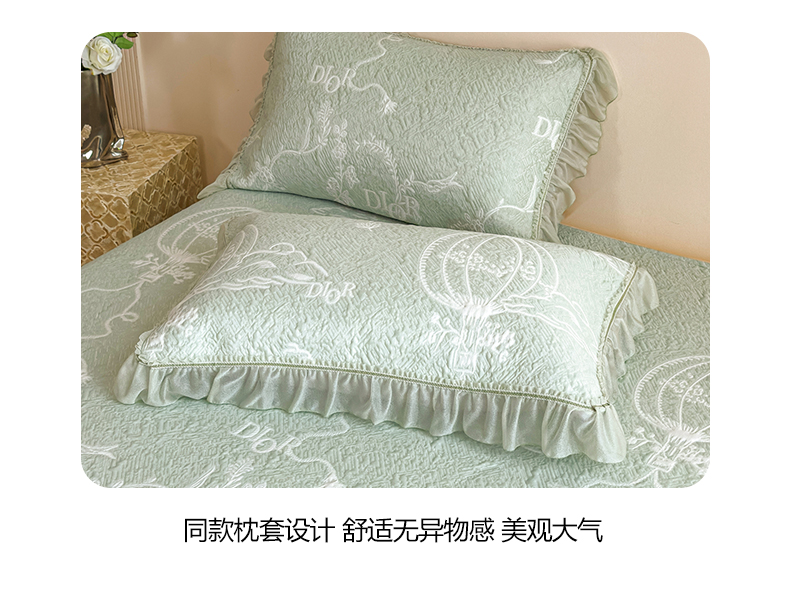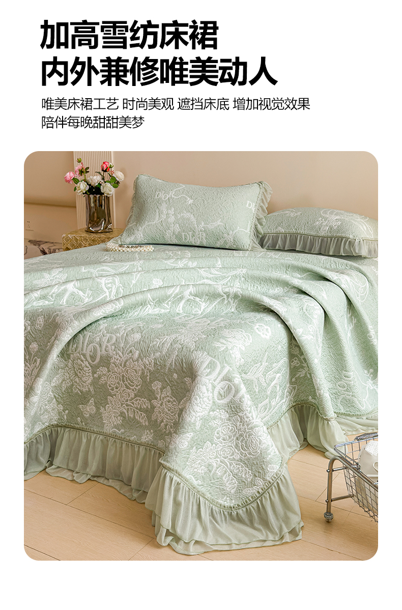 慕木家纺 2026新款A类三明治复合乙纶提花冰豆豆花边床盖款床迪奥风系列(提供买家秀) 迪奥玫瑰-绿