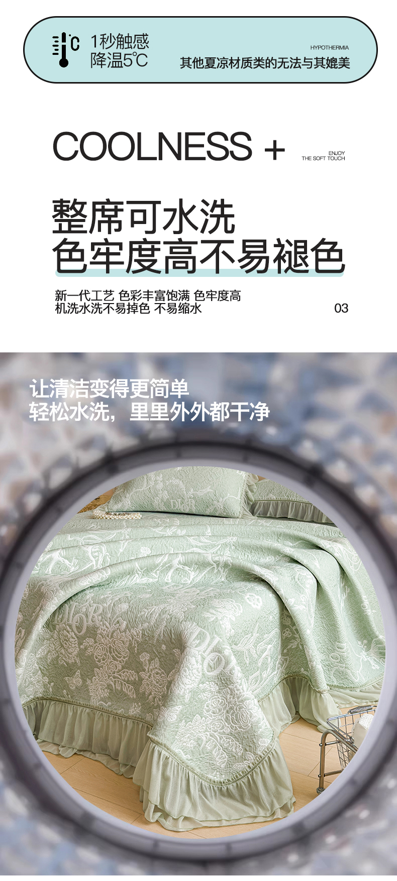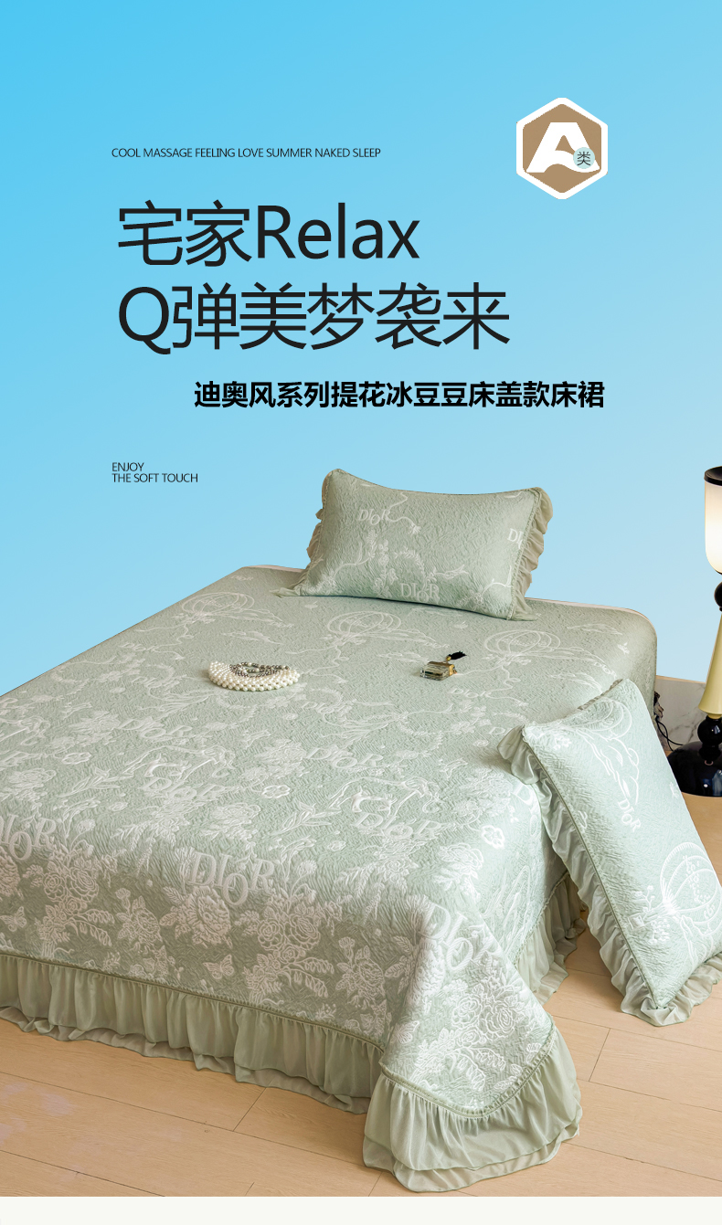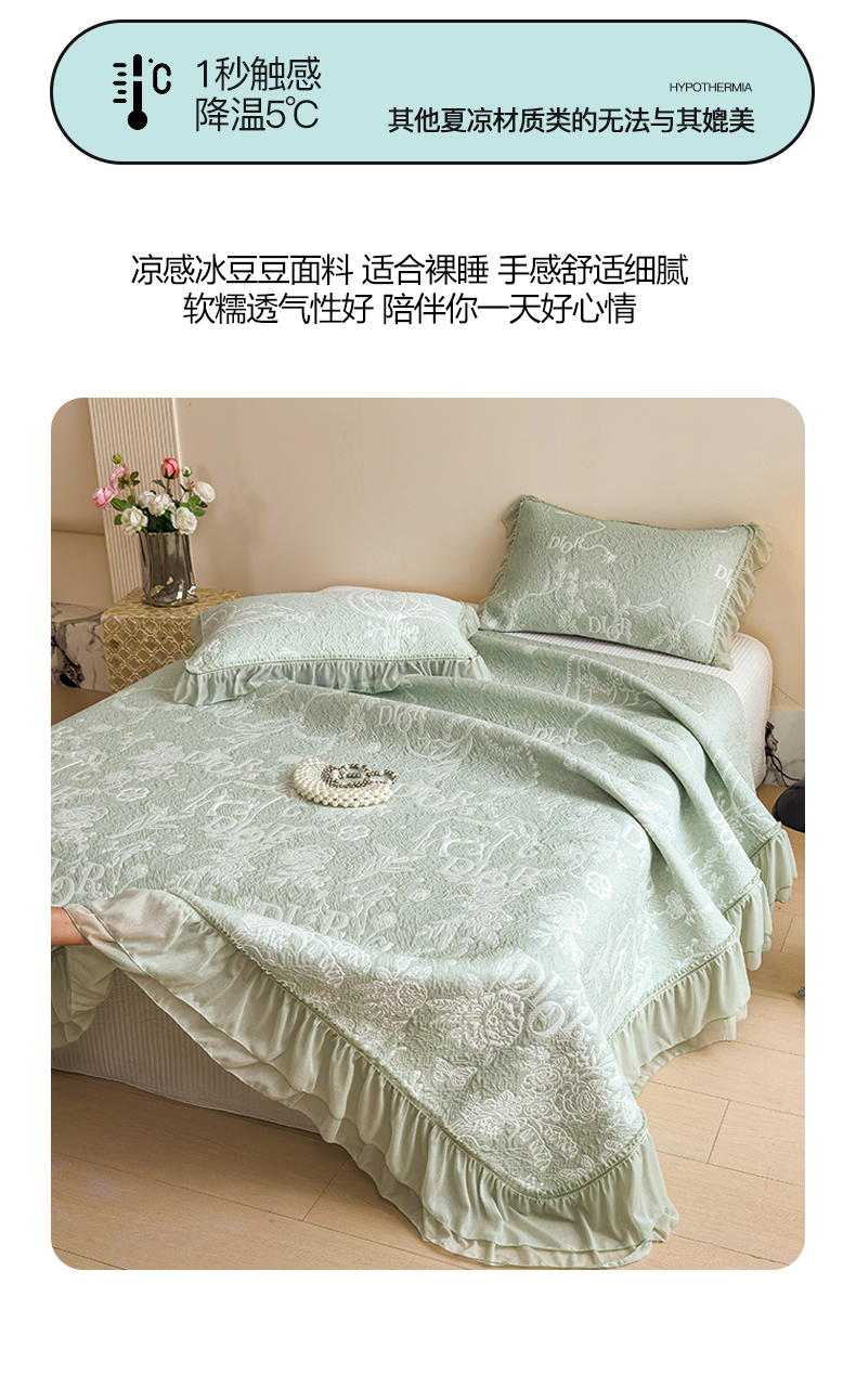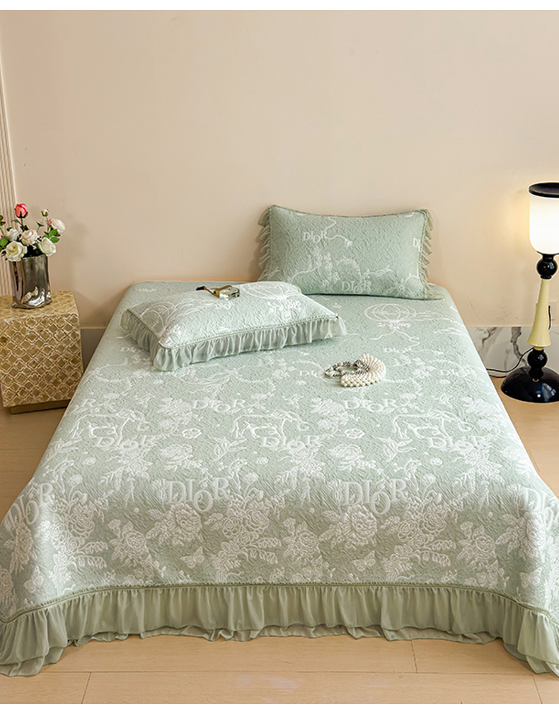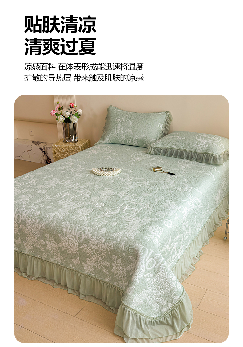 慕木家纺 2026新款A类三明治复合乙纶提花冰豆豆花边床盖款床迪奥风系列(提供买家秀) 迪奥玫瑰-绿