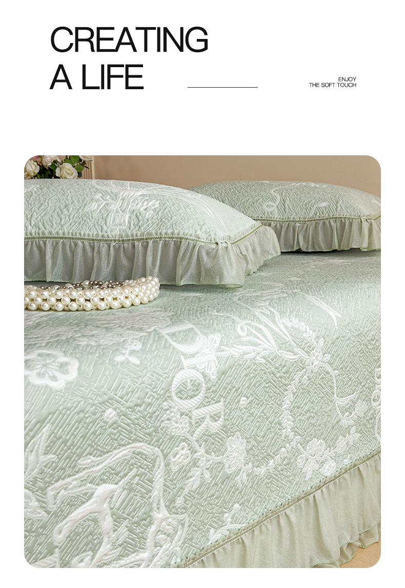 商品名称:慕木家纺 2026新款A类三明治复合乙纶提花冰豆豆花边床盖款床迪奥风系列(提供买家秀) 迪奥玫瑰-绿