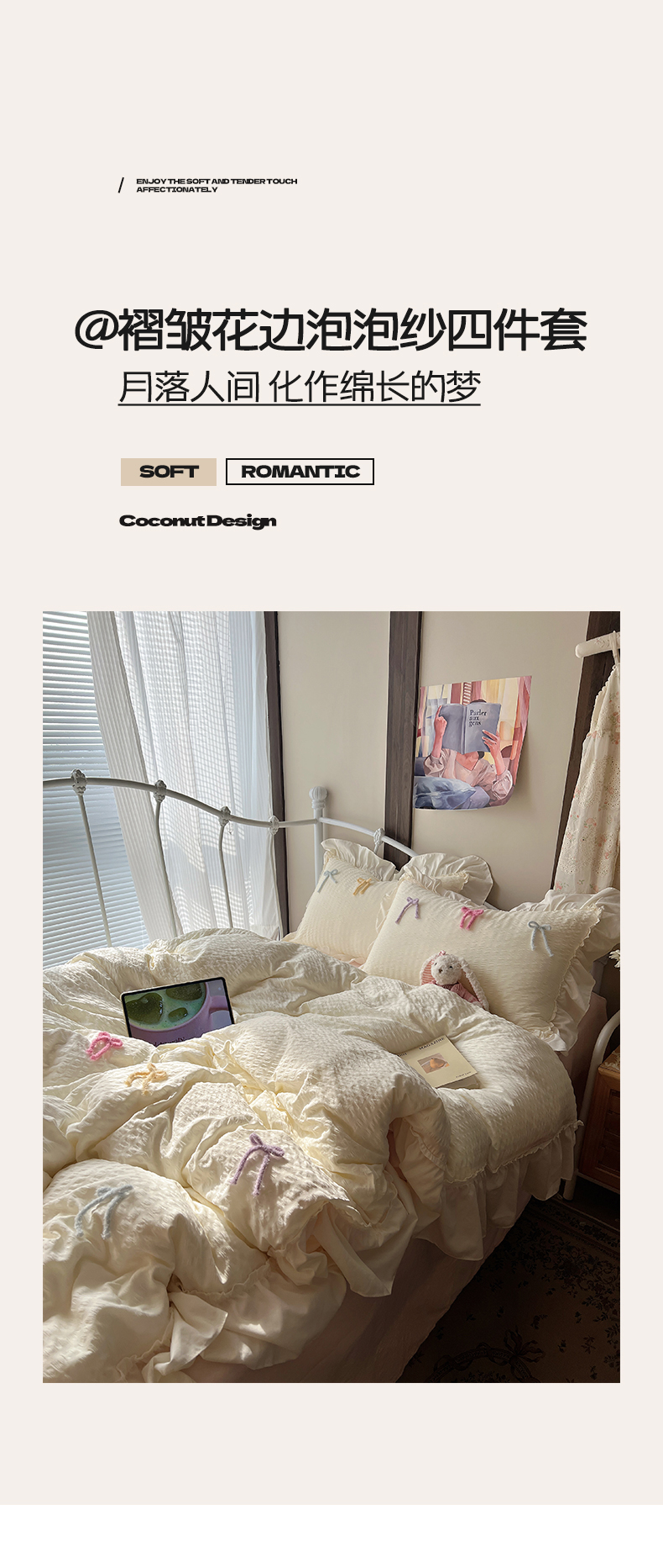 当前位置: 91家纺网 > 商品网购 > 床品套件 > 四件套 > 其它四件套 > 顾里家纺 2026新款韩系仙女泡泡纱丝带四件套 奶油丝带
