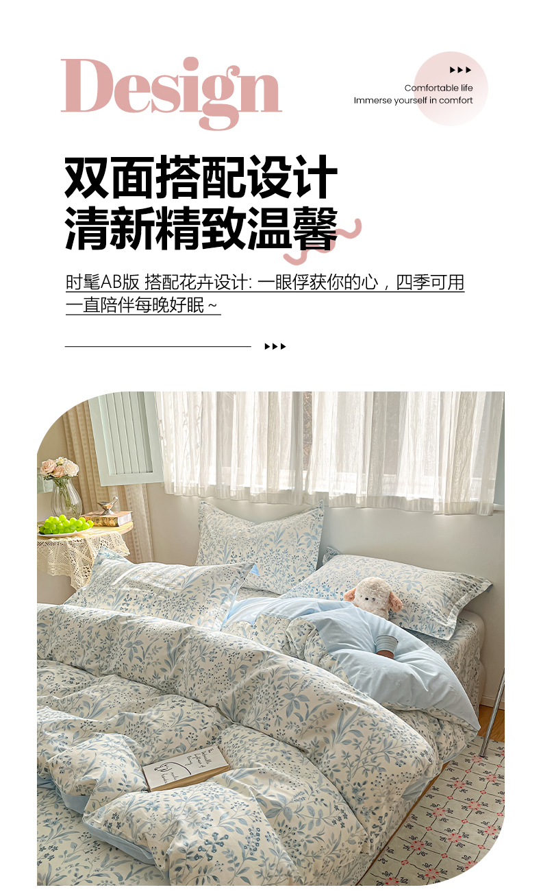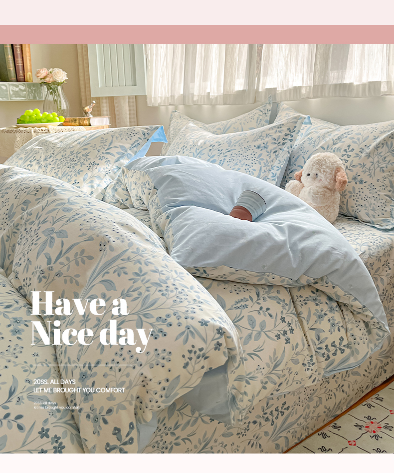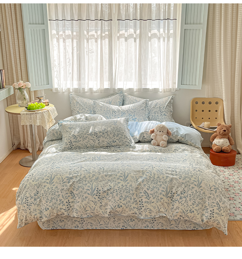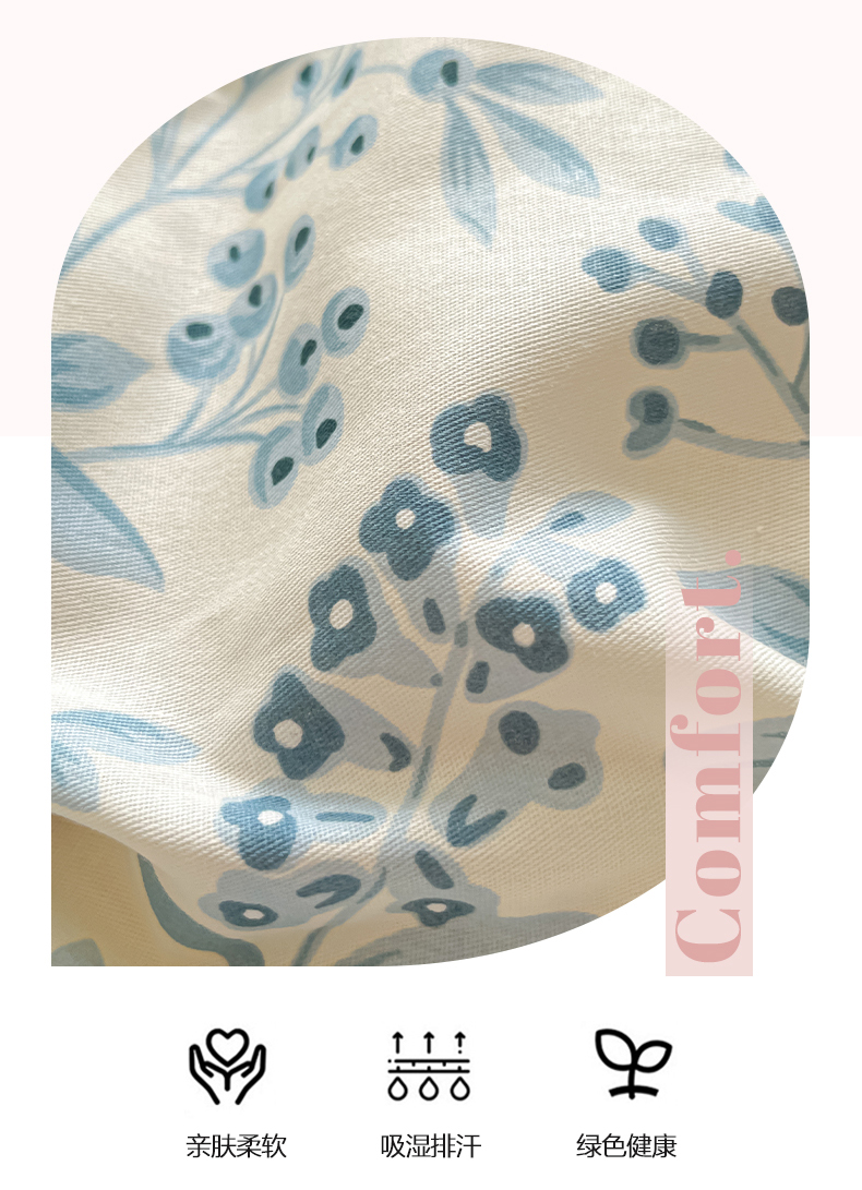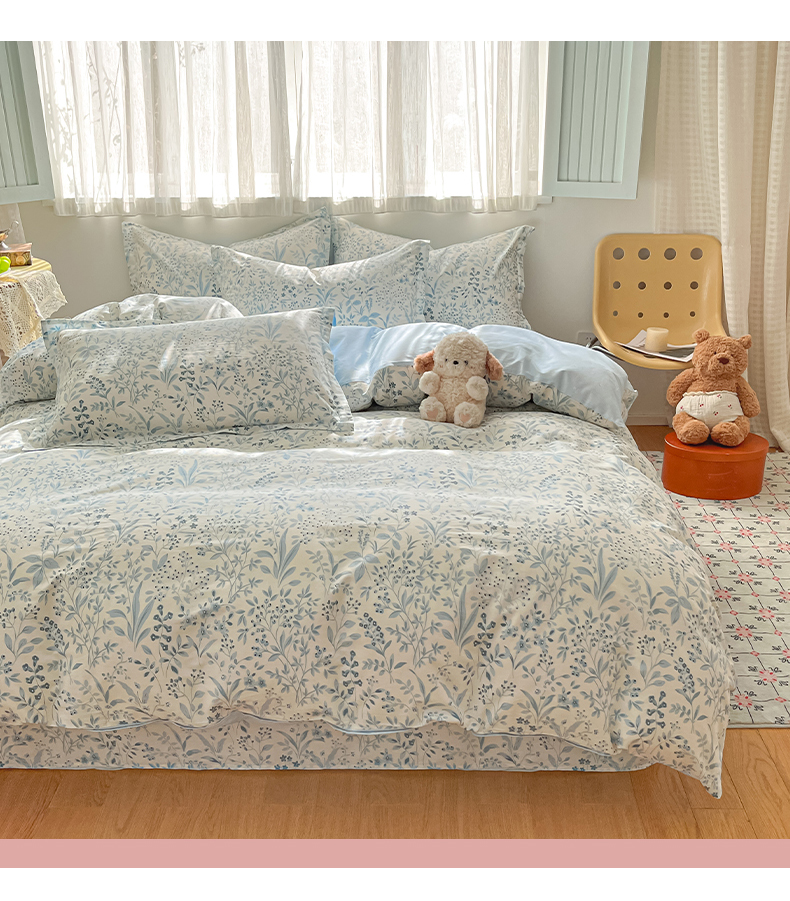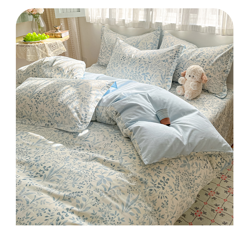 当前位置: 91家纺网 > 商品网购 > 床品套件 > 四件套 > 全棉普通四件套 > 女子家纺 2026新款全棉纯棉印花单品系列花卉款四件套 蓝沫