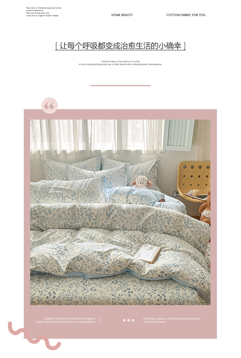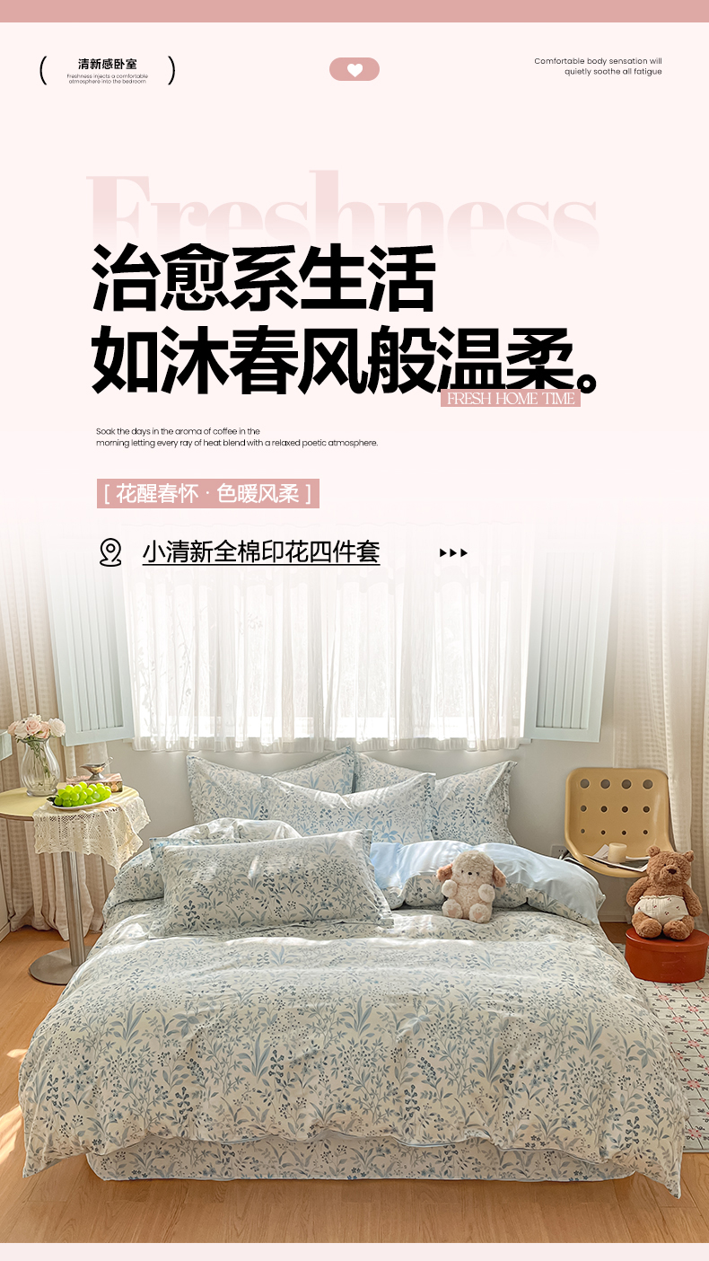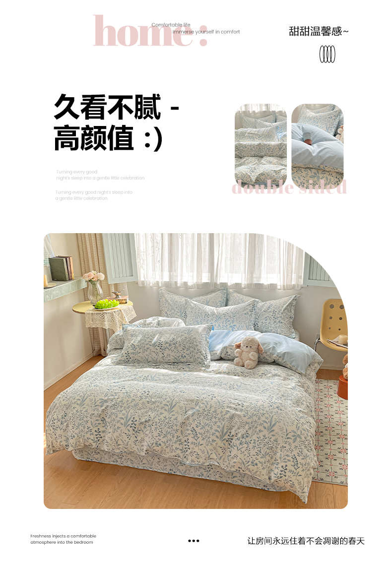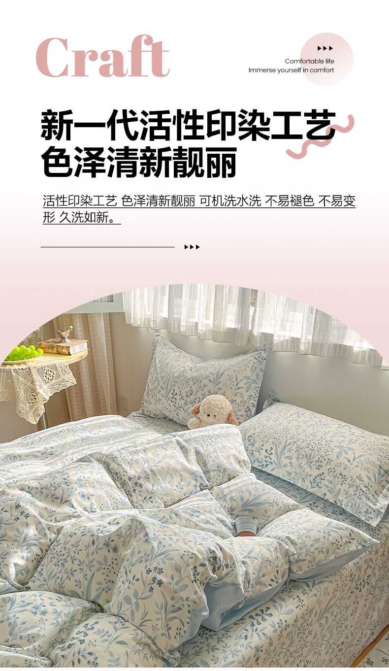 当前位置: 91家纺网 > 商品网购 > 床品套件 > 四件套 > 全棉普通四件套 > 女子家纺 2026新款全棉纯棉印花单品系列花卉款四件套 蓝沫