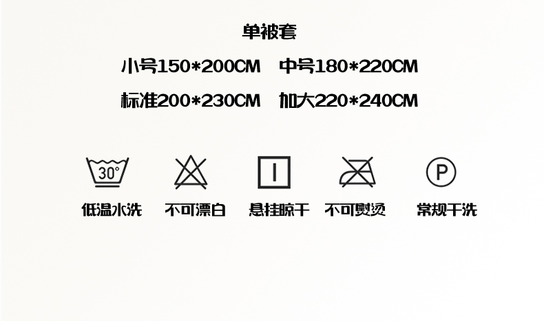 小号四件套:被套150*200床单180*230 | ¥39.00 |