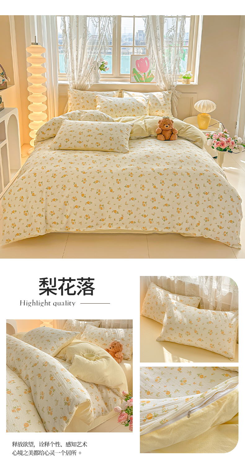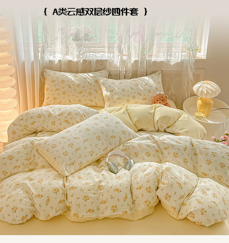 当前位置: 91家纺网 > 商品网购 > 床品套件 > 四件套 > 其它四件套 > 侯先生家纺新款直播爆款云感双层纱皱皱纱四件套小清新水洗棉床笠 梨花落