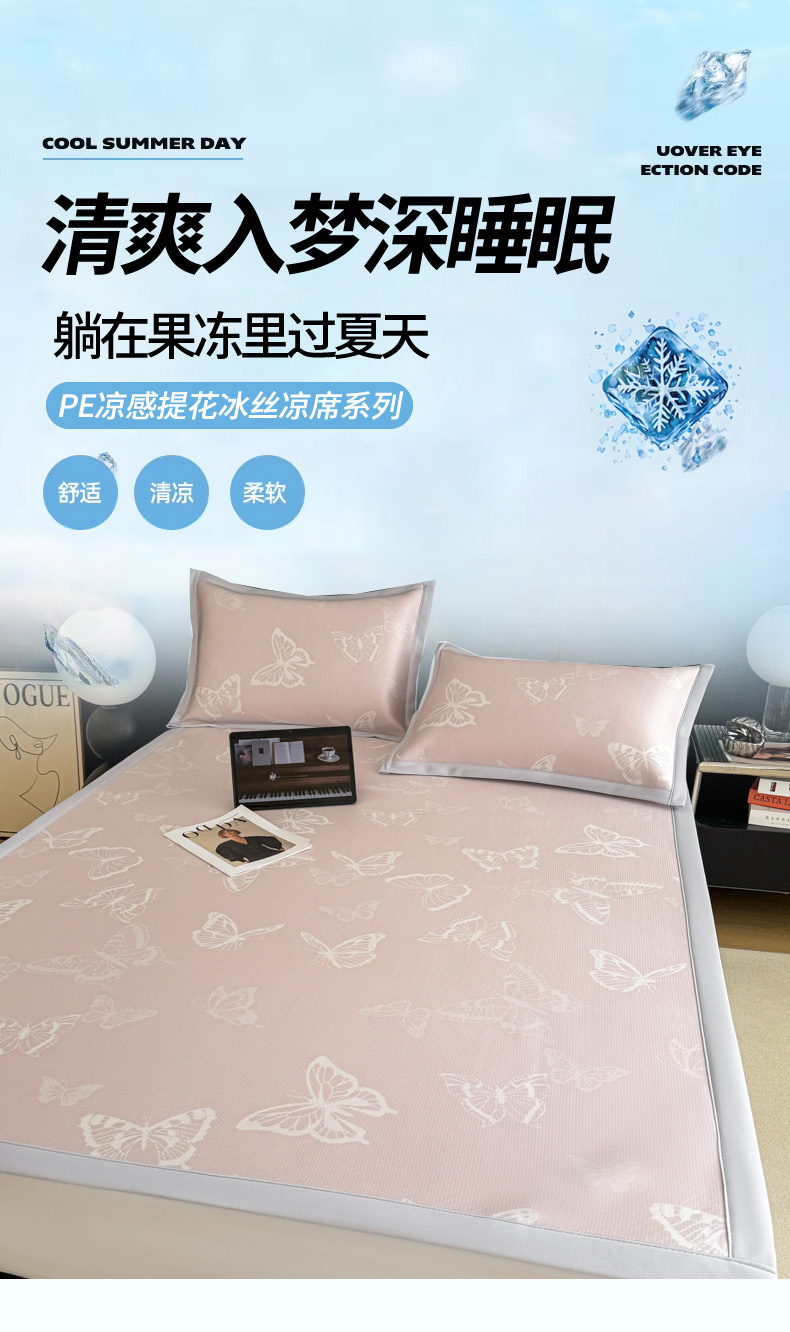 倾慕家纺 2026新款PE50提花凉感冰丝凉席 简蝶粉