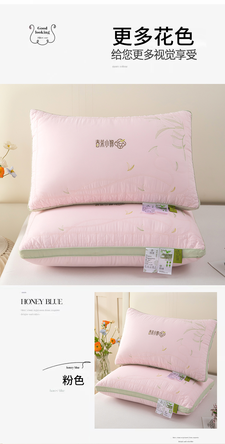 (总)九州枕芯 2026新款春茶小锦羽丝棉枕枕头枕芯,白色,粉色,灰色