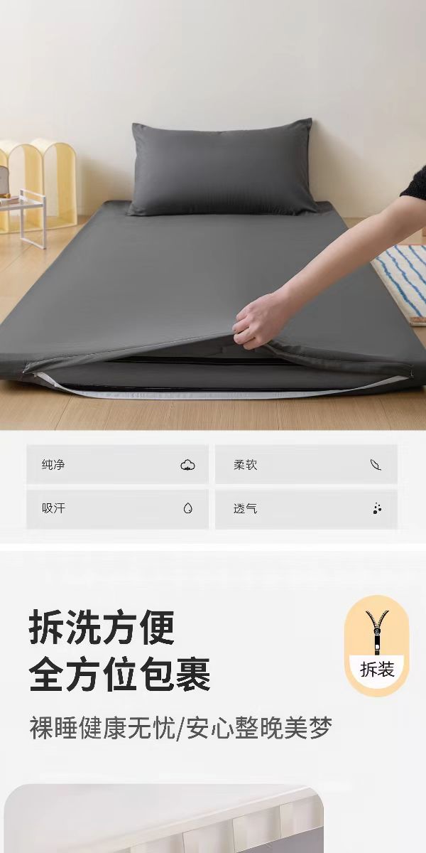 (总)梵克保罗 2026新款亲肤舒适简约款学生床床垫套,白色,粉色,黑色,卡其,蓝色,墨绿,深灰