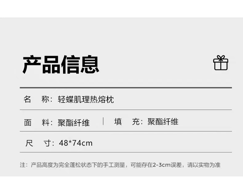 商品名称:九州枕芯 2026新款轻蝶肌理热熔枕枕头枕芯 粉色